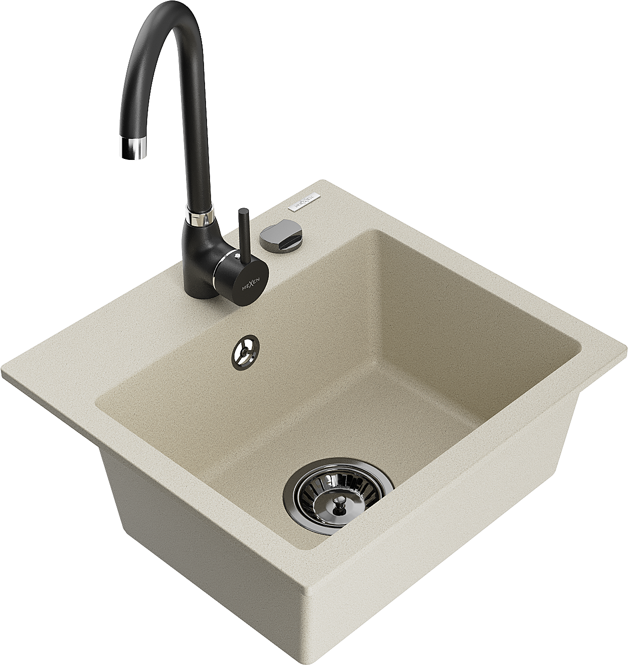 Mexen Milo chiuvetă de bucătărie din granit cu 1 cameră și baterie Telma, bej - 6505-69-670200-70