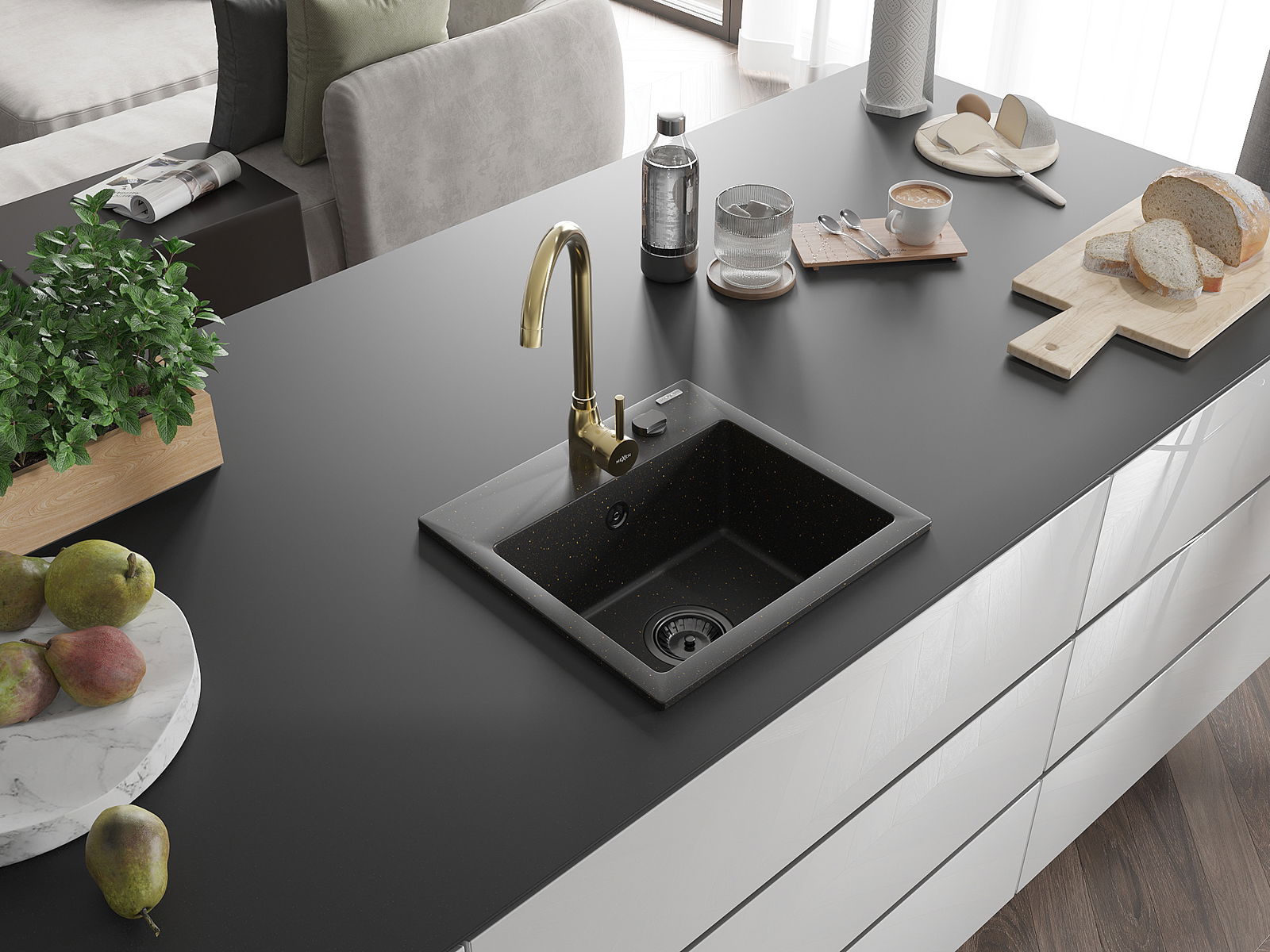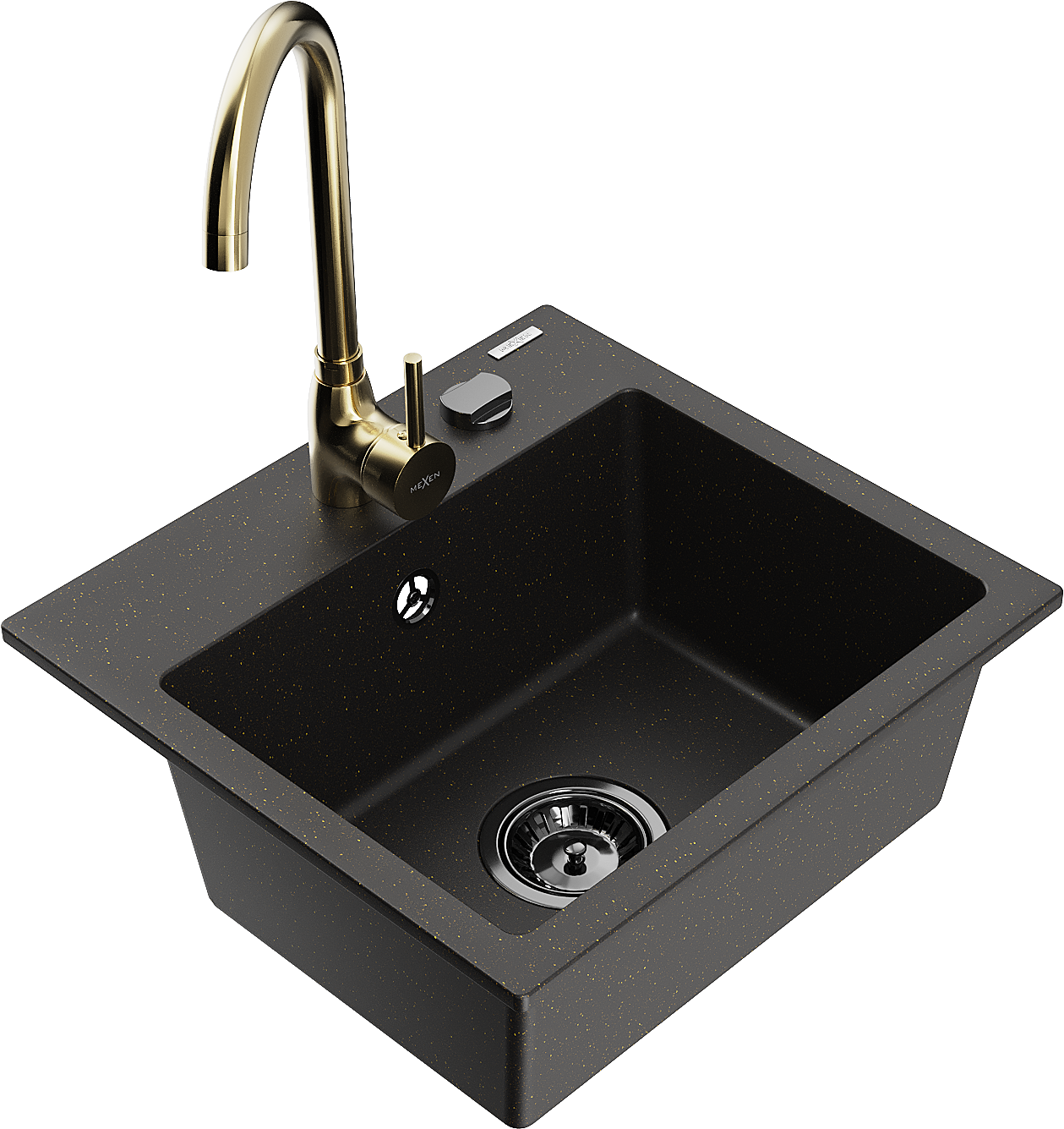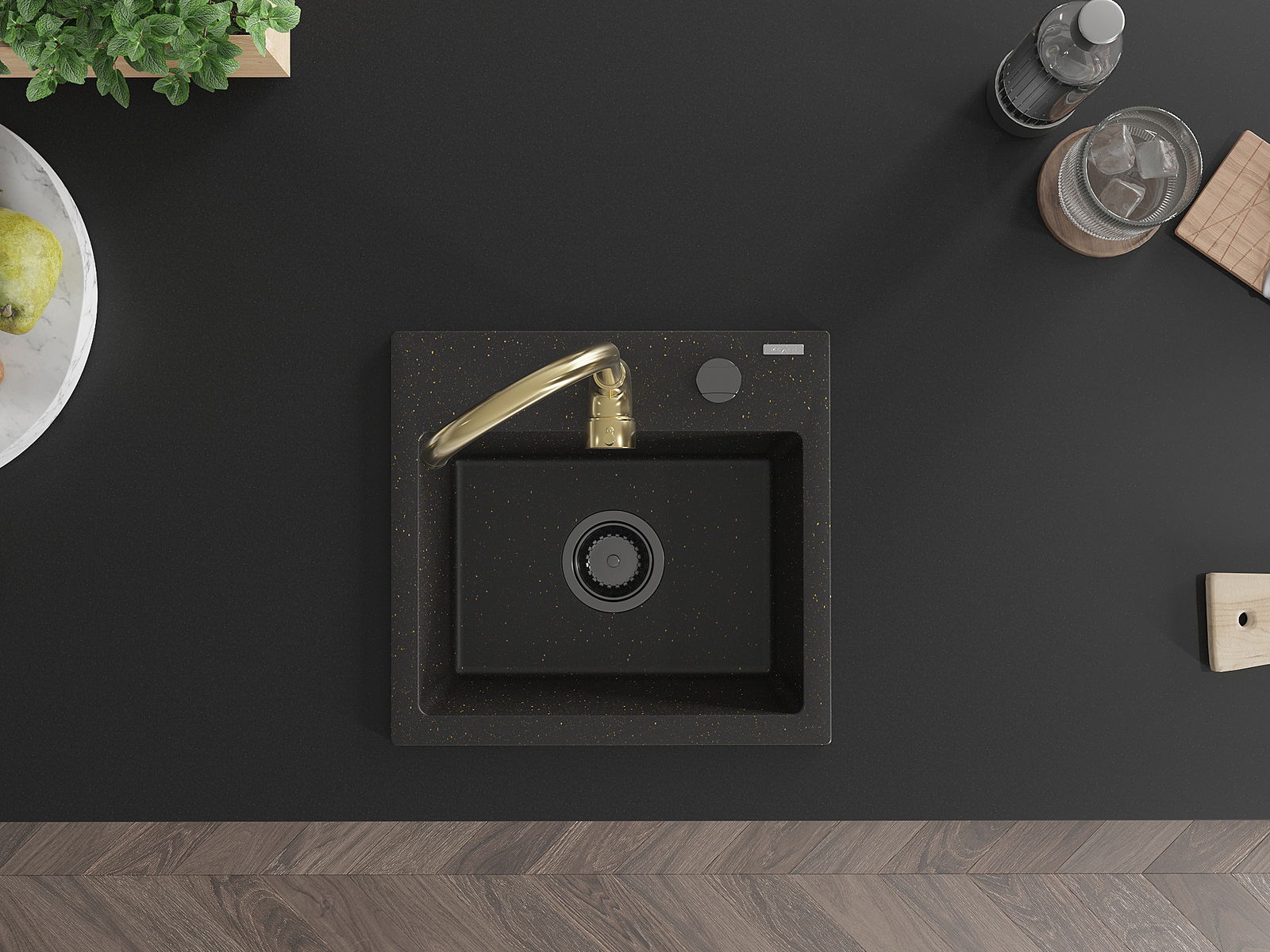 Mexen Milo chiuvetă de granit cu 1 cameră cu baterie de bucătărie Telma, negru/auriu - 6505-75-670200-50-B