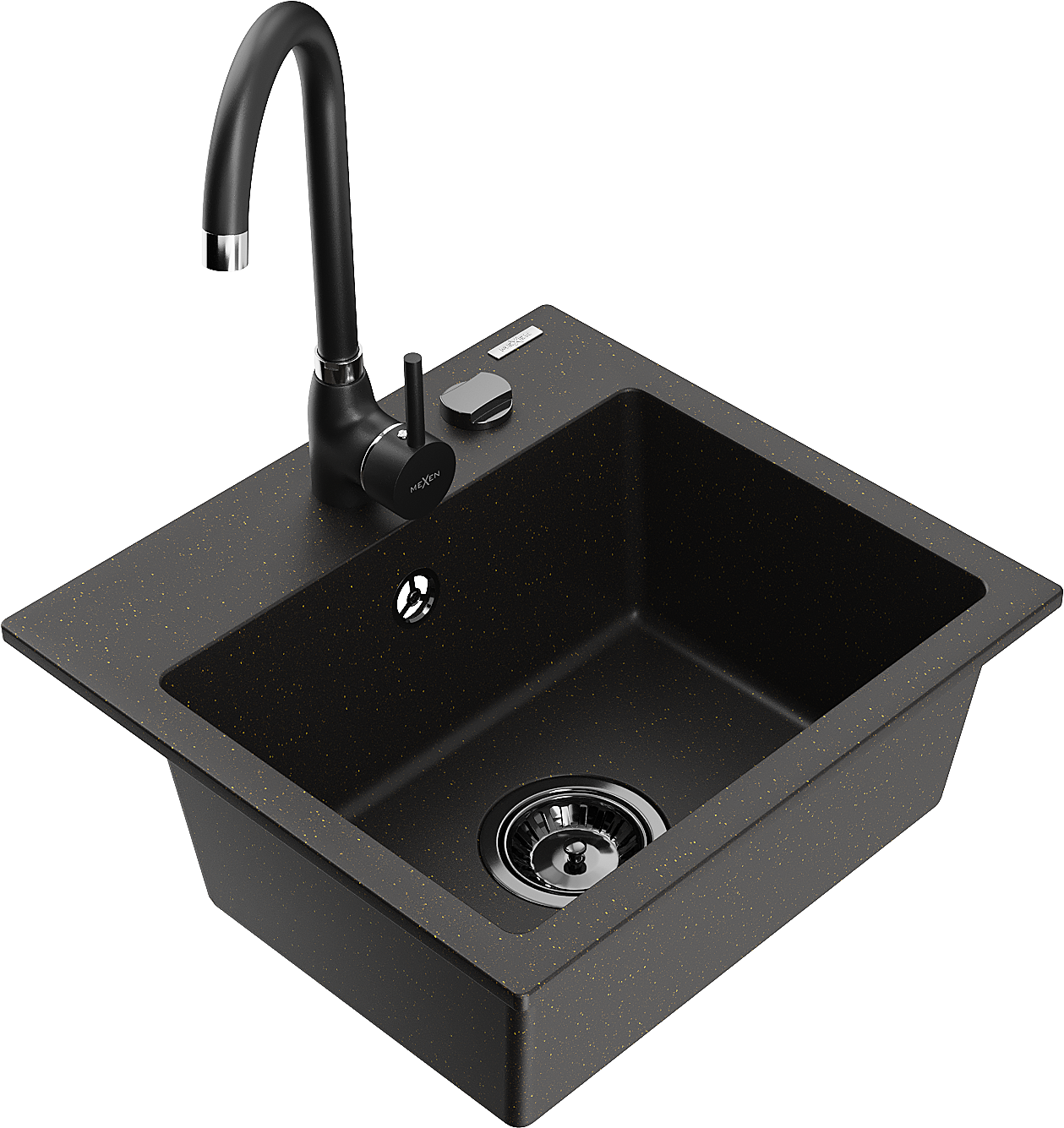 Mexen Milo chiuvetă de granit cu 1 compartiment cu baterie de bucătărie Telma, negru/auriu - 6505-75-670200-70-B