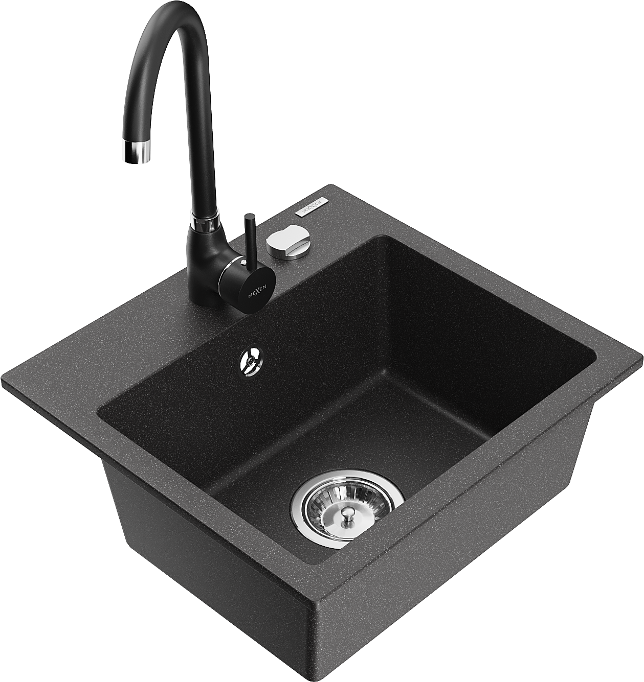 Mexen Milo chiuvetă de granit cu 1 compartiment și baterie de bucătărie Telma, negru pătat - 6505-76-670200-70