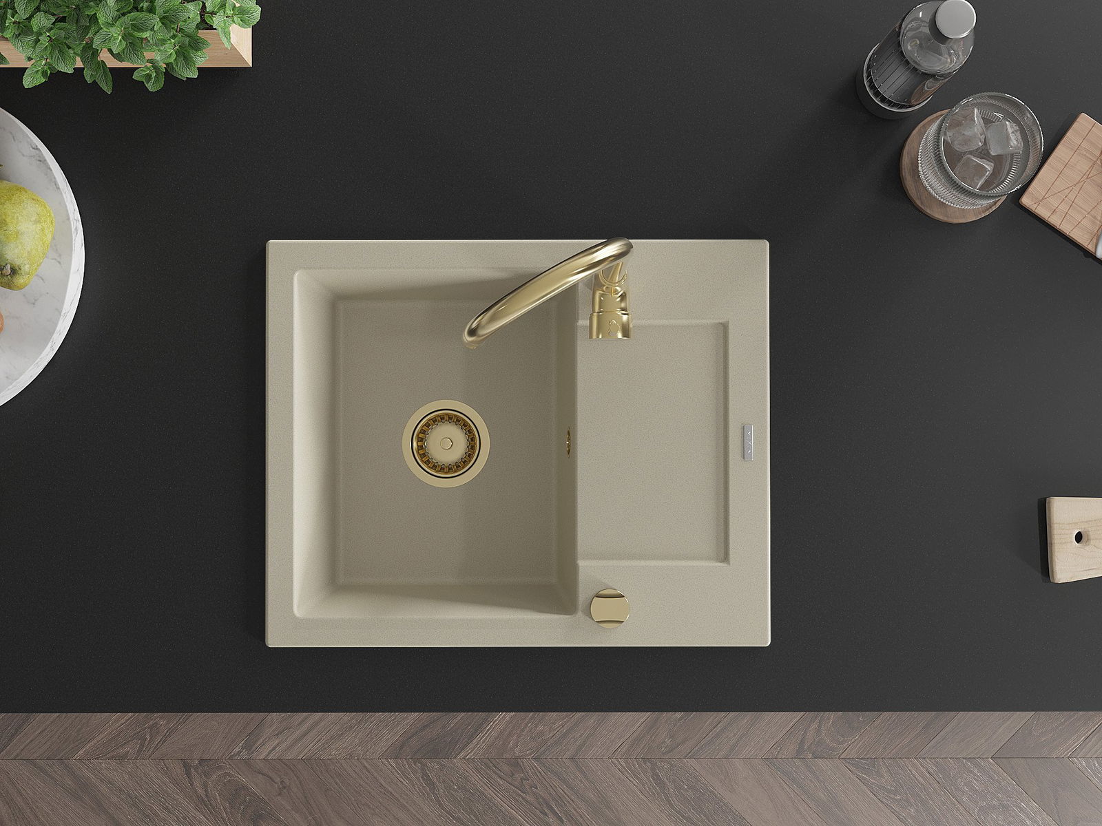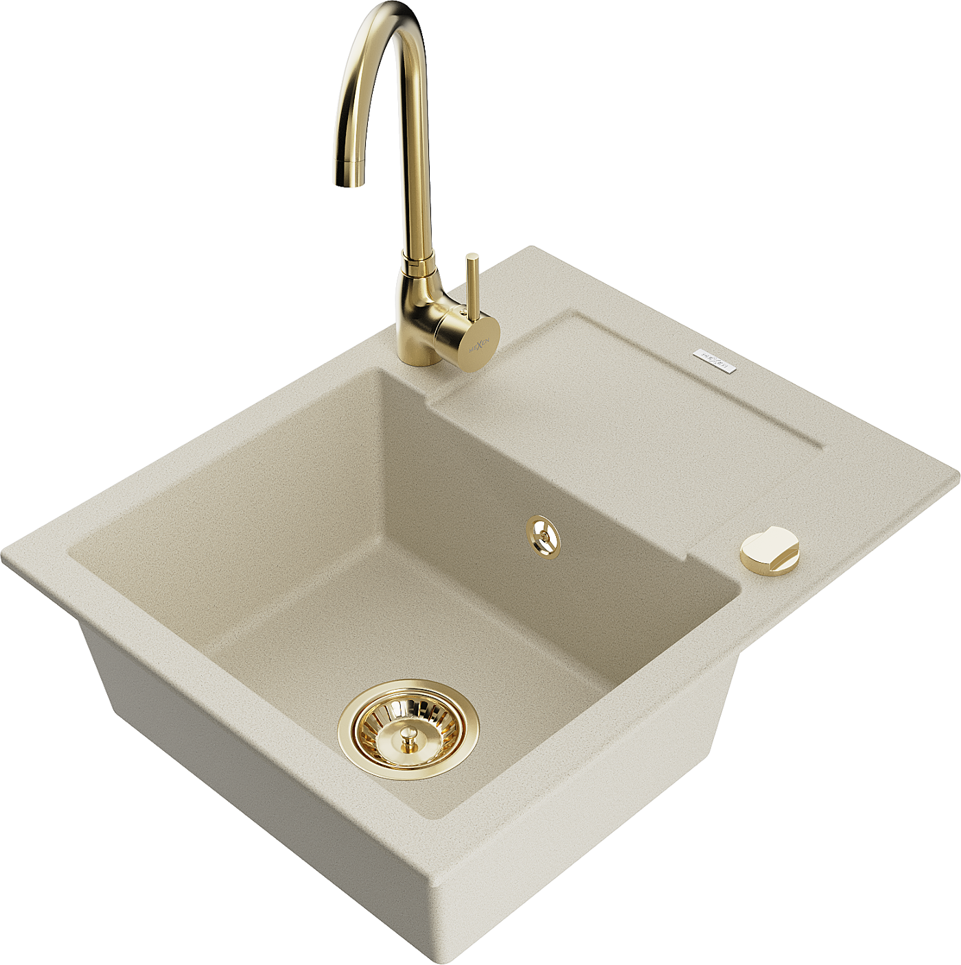 Mexen Enzo chiuvetă de granit 1-cameră cu scurgător și baterie de bucătărie Telma, bej - 6506-69-670200-50
