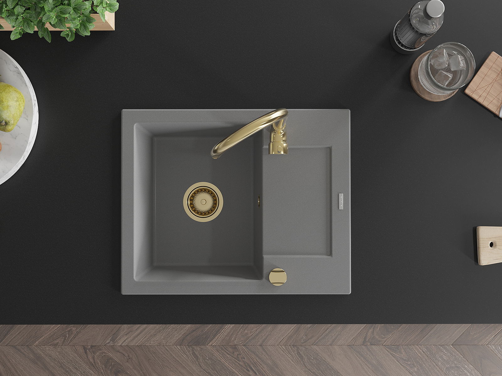 Mexen Enzo chiuvetă din granit cu 1 compartiment cu scurgător și baterie de bucătărie Telma, gri - 6506-71-670200-50