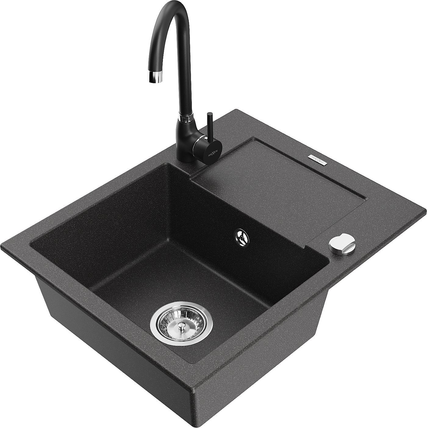 Mexen Enzo chiuvetă de granit cu 1 compartiment și scurgător, cu baterie de bucătărie Telma, negru cu picățele - 6506-76-670200?