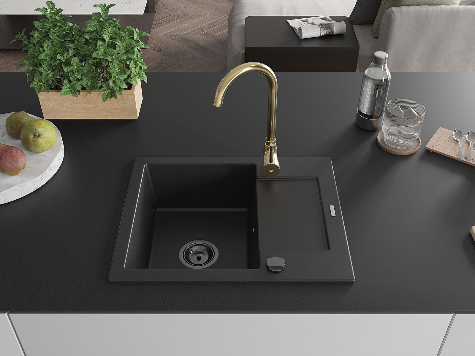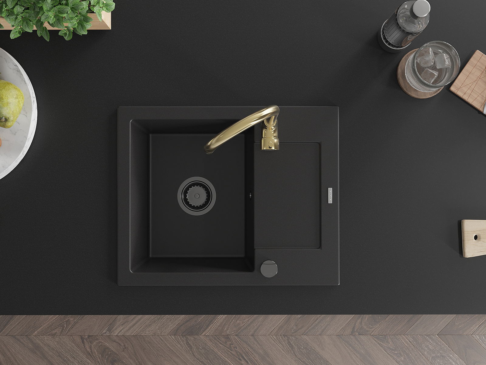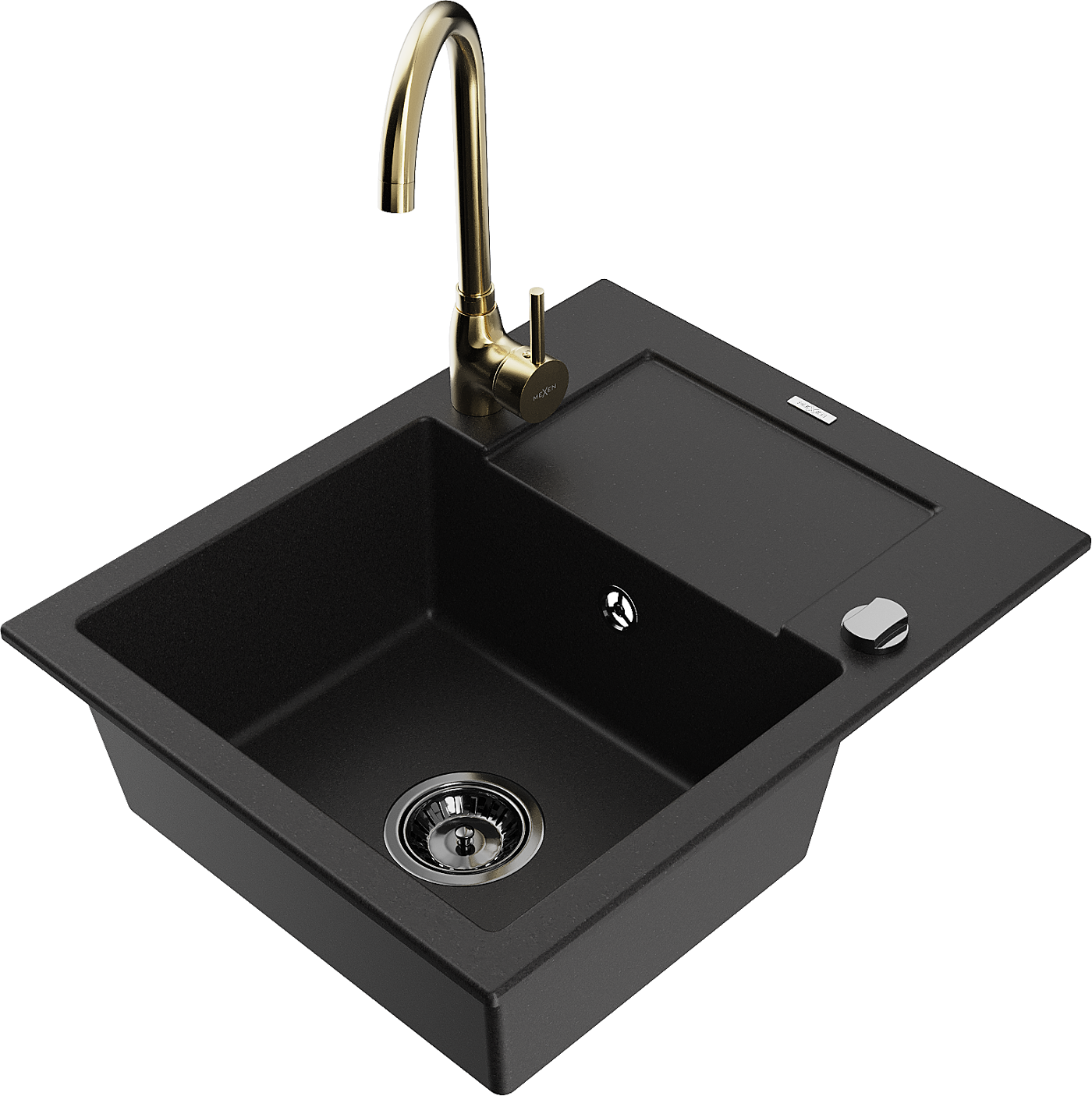 Mexen Enzo chiuvetă de bucătărie din granit cu 1 cuvă și scurgător și baterie Telma, negru - 6506-77-670200-50-B