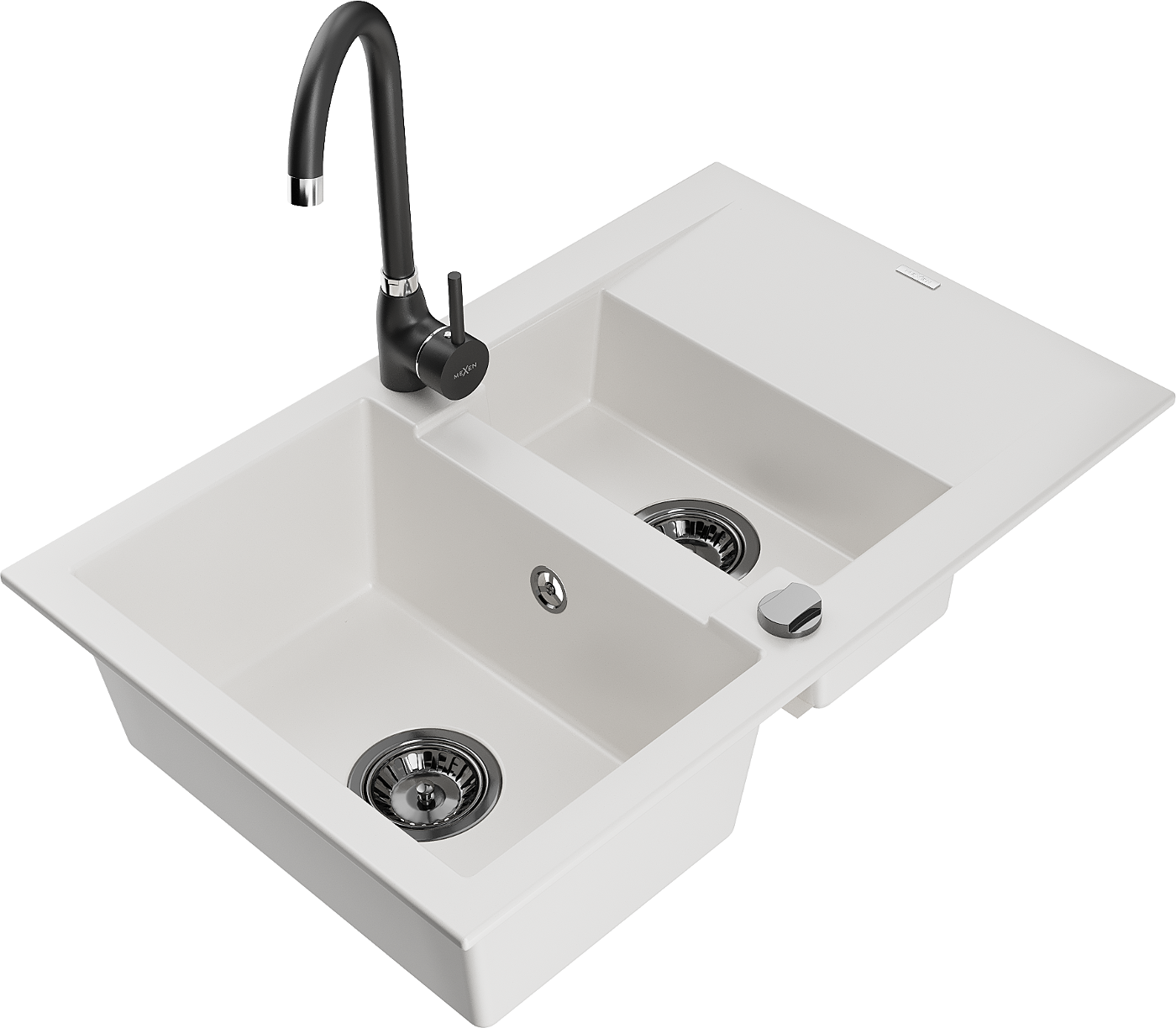 Mexen Gaspar chiuvetă de bucătărie din granit cu 1,5 compartimente cu scurgător și baterie de bucătărie Telma, alb - 6507-20-67?