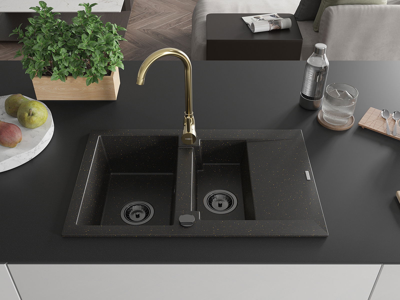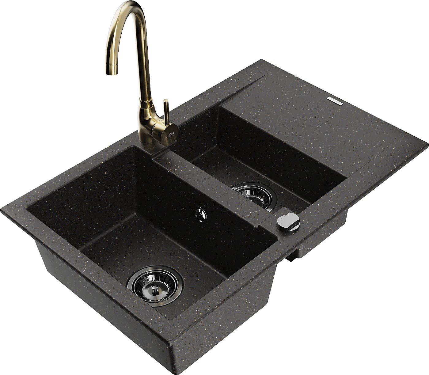 Mexen Gaspar chiuvetă de bucătărie din granit cu 1,5 compartimente, cu scurgător și baterie de bucătărie Telma,