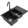 Mexen Gaspar chiuvetă de granit cu 1,5 compartimente, cu scurgător și baterie de bucătărie Telma, negru stropit