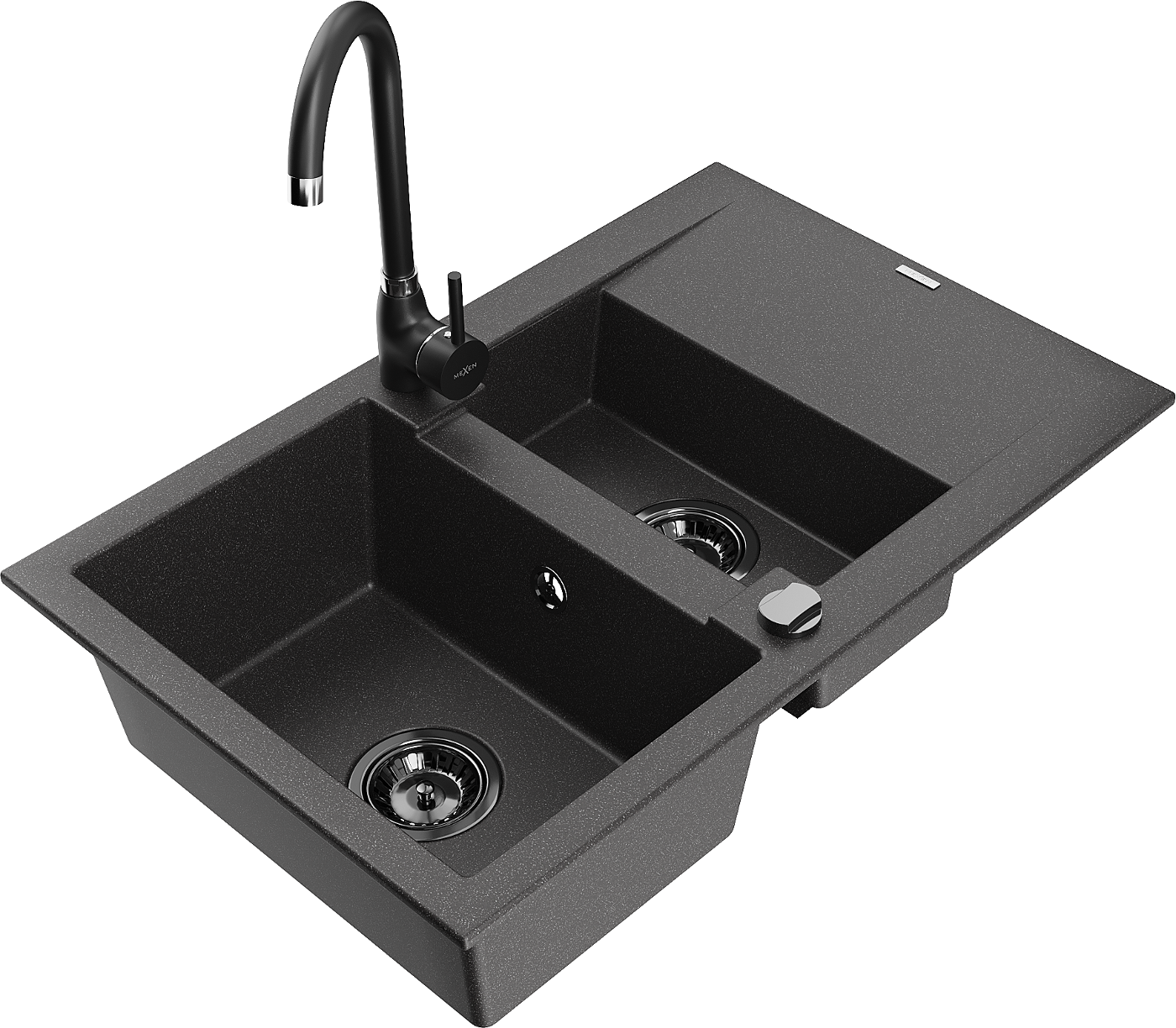 Mexen Gaspar chiuvetă granită 1,5 compartimente cu scurgător și baterie de bucătărie Telma, negru pătat - 6507-76-670200-70-B