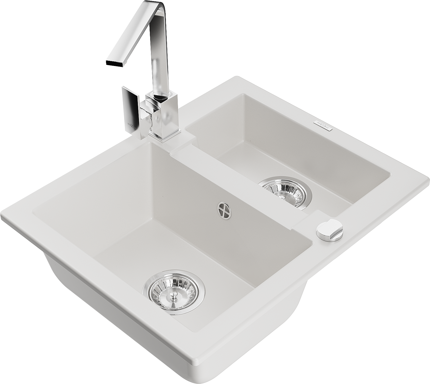 Mexen Carlos chiuvetă granit 1,5 camera cu baterie bucătărie Rita, alb - 6518-20-670300-00