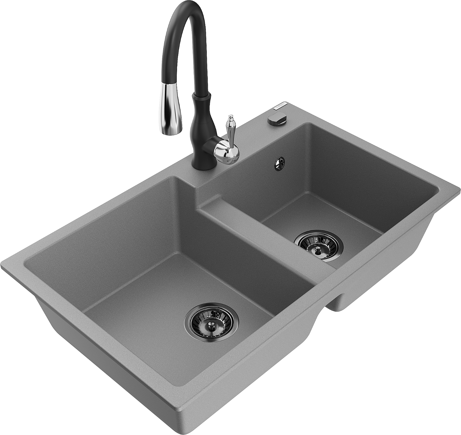 Mexen Tomas chiuvetă de bucătărie din granit cu 2 compartimente și baterie Savita, gri - 6516-71-672601-70-B