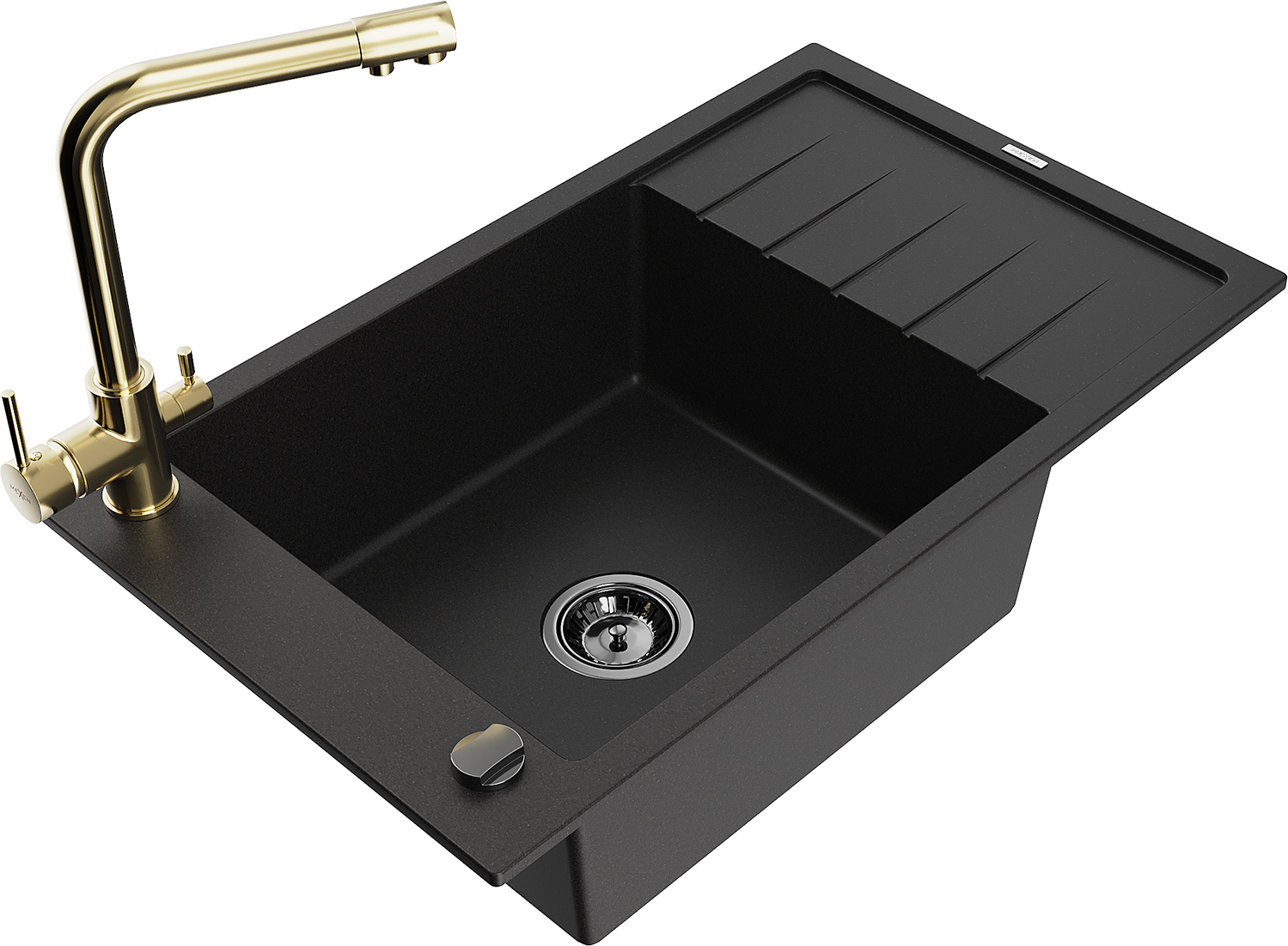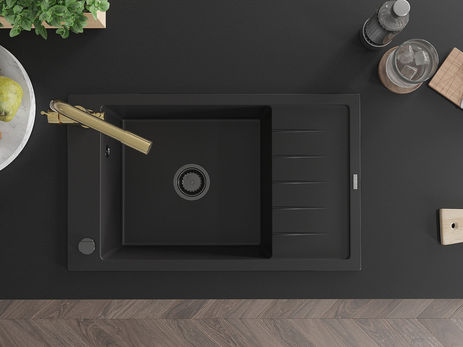 Mexen Elias chiuvetă granit 1-cuvă cu scurgător și baterie bucătărie Duero, negru - 6511-77-671600-50-B