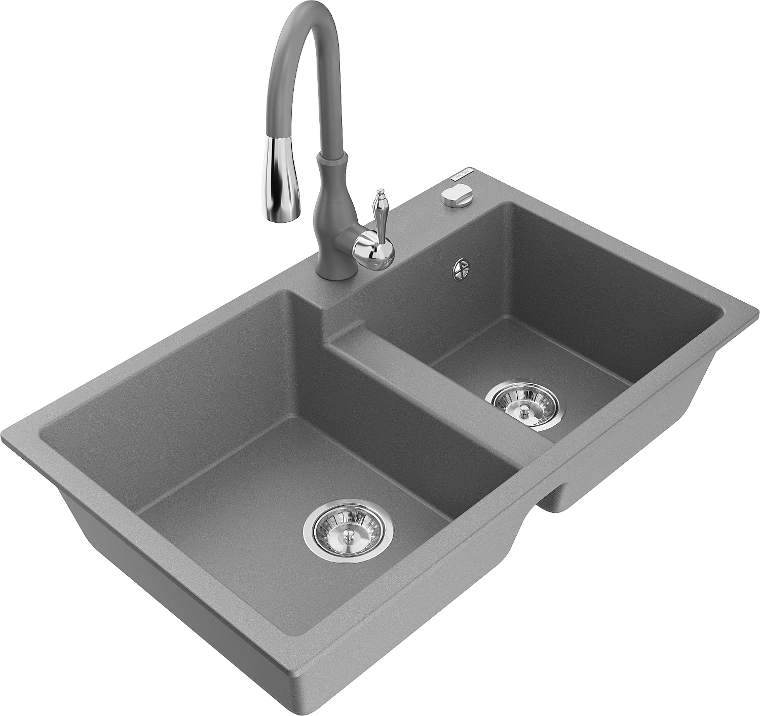Mexen Tomas chiuvetă de granit cu 2 camere cu baterie de bucătărie Savita, gri - 6516-71-672601-71