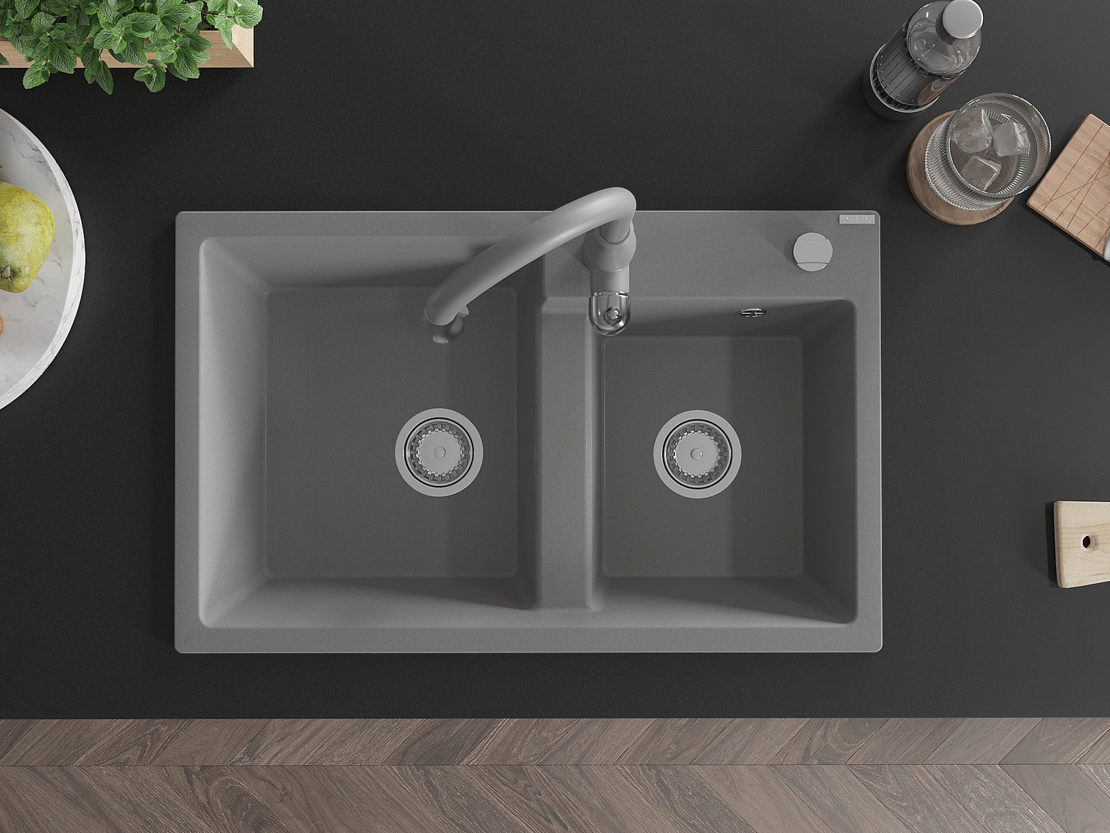 Suprafața chiuvetei este rezistentă la pete și decolorarea, datorită căreia este ușor de curățat și își păstrează culoarea mult timp. Estetică și practic completarea fiecărei bucătării.