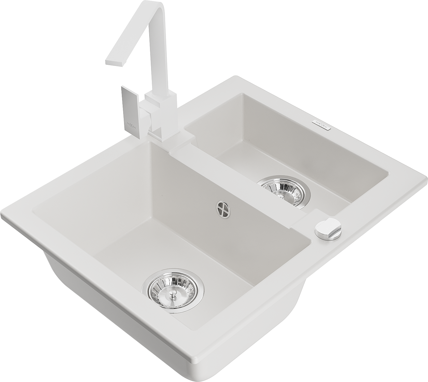 Mexen Carlos chiuvetă din granit cu 1,5 camere și baterie de bucătărie Rita, alb - 6518-20-670300-20