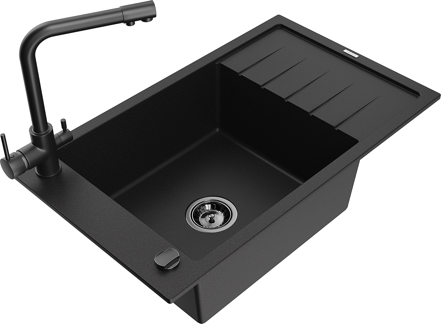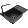 Mexen Elias chiuvetă de granit cu o singură cuvă și scurgător și baterie de bucătărie Duero, negru - 6511-77-671600-70-B
