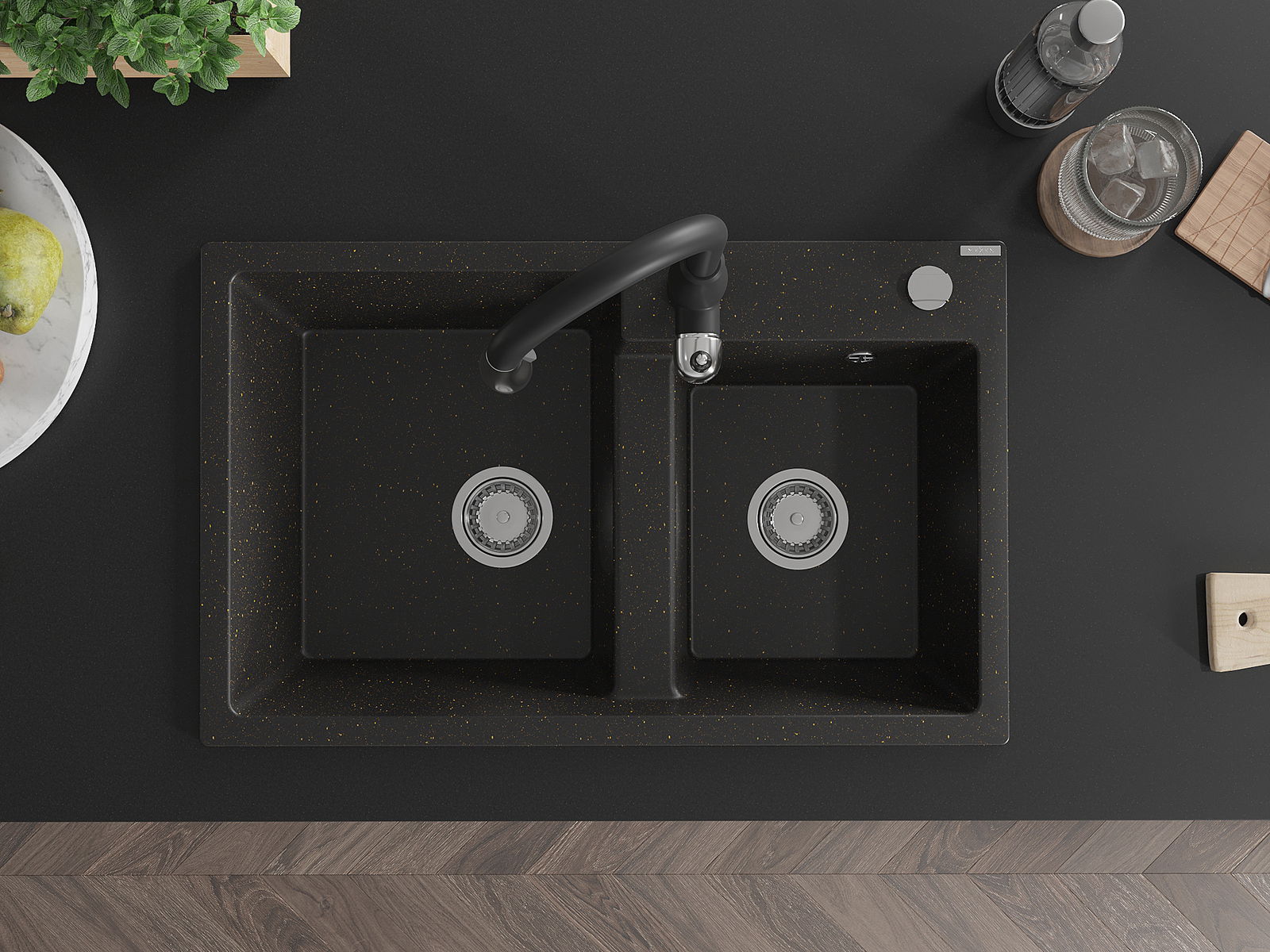 Chiuveta are o gaură prezentată cu un diametru de 35 mm pentru auto -burst. Poate fi folosit, printre altele Pentru montarea unui distribuitor de lichid care va elimina prezența sticlelor de plastic în bucătărie și îi va oferi un finisaj elegant.