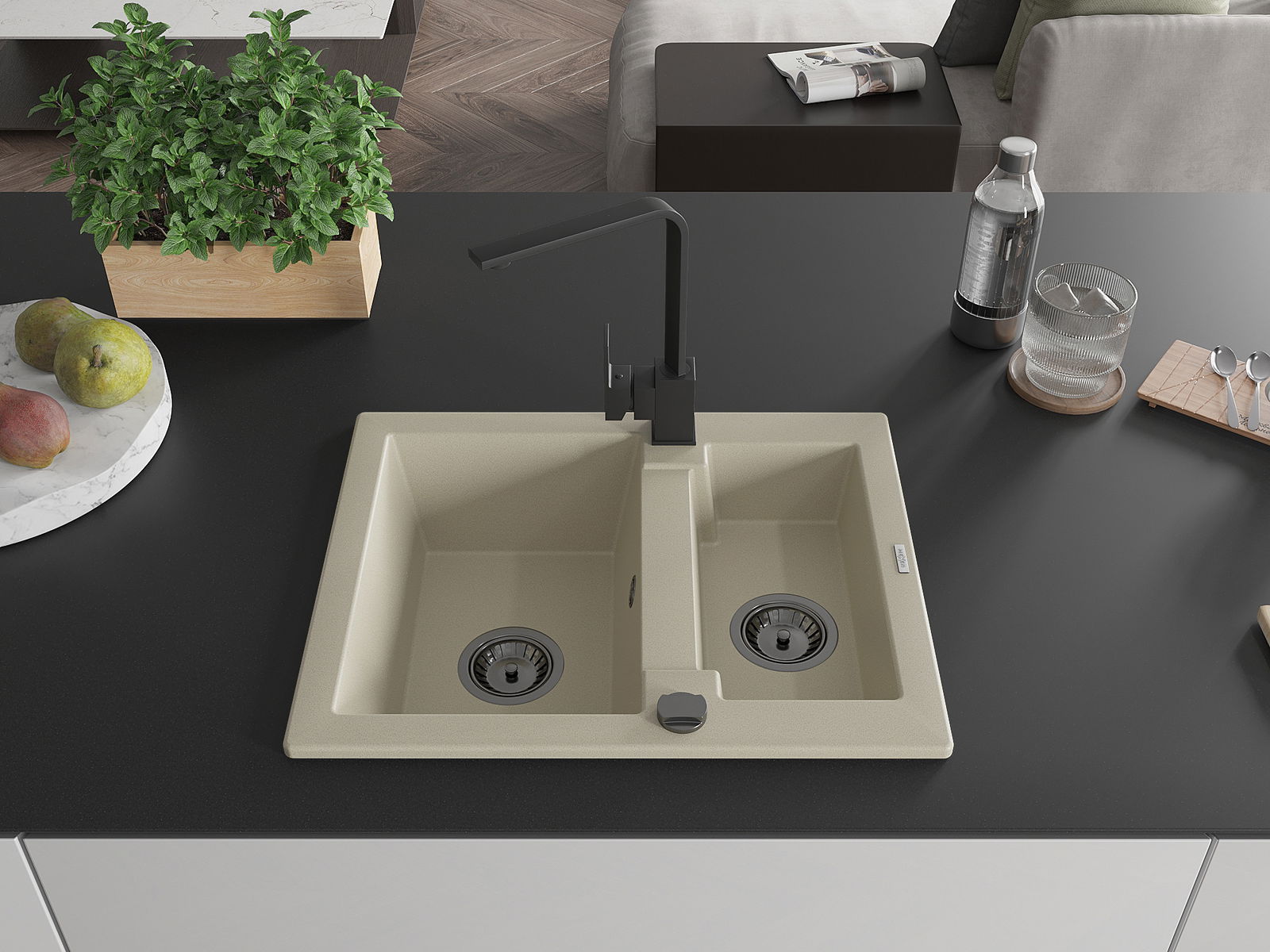 Mexen Carlos chiuvetă de granit 1,5 camere cu baterie de bucătărie Rita, bej - 6518-69-670300-70