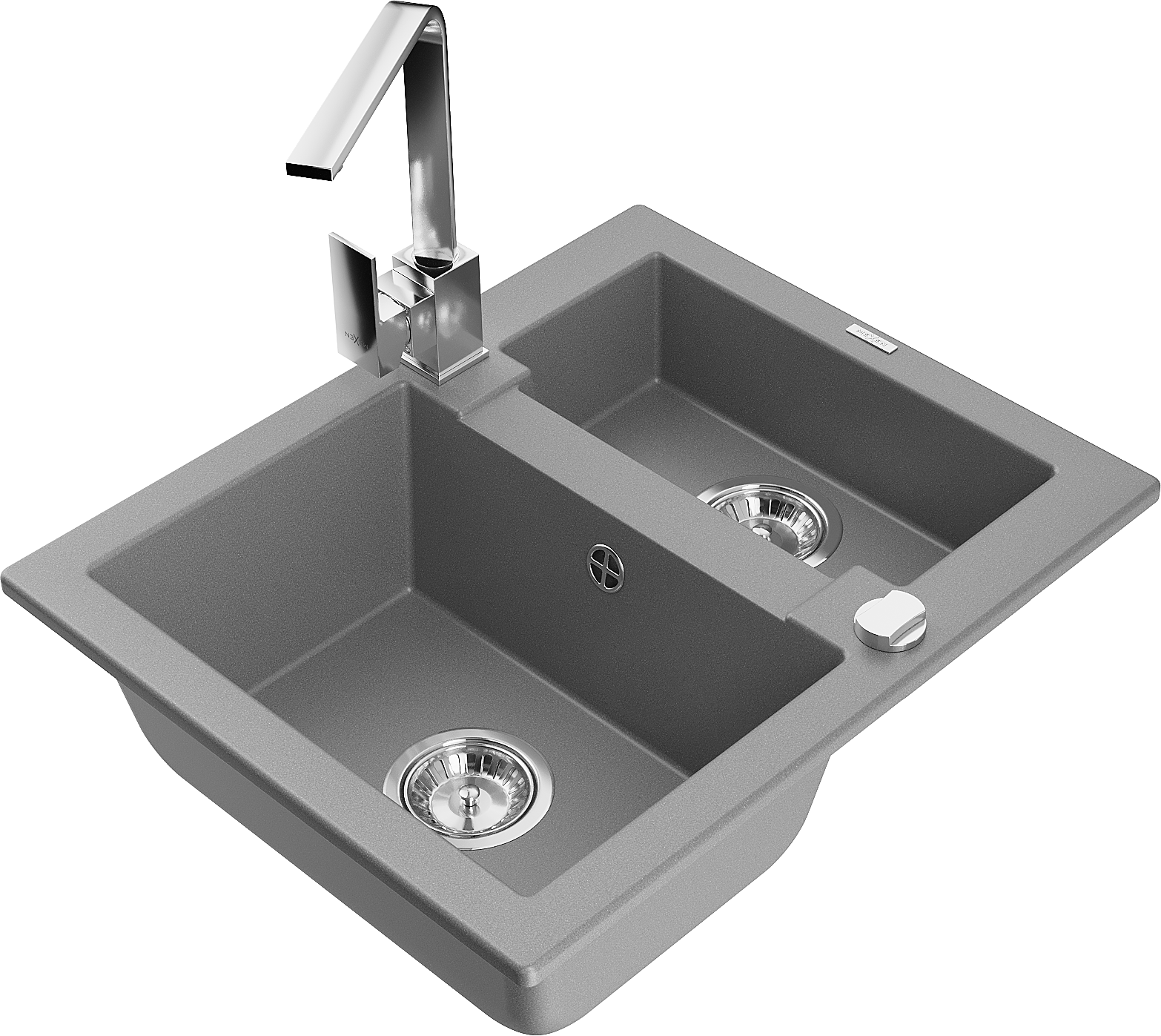 Mexen Carlos chiuvetă de bucătărie din granit 1,5 compartimente cu baterie de bucătărie Rita, gri - 6518-71-670300-00