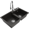 Mexen Tomas chiuvetă din granit cu 2 compartimente și baterie de bucătărie Savita, negru - 6516-77-672601-00
