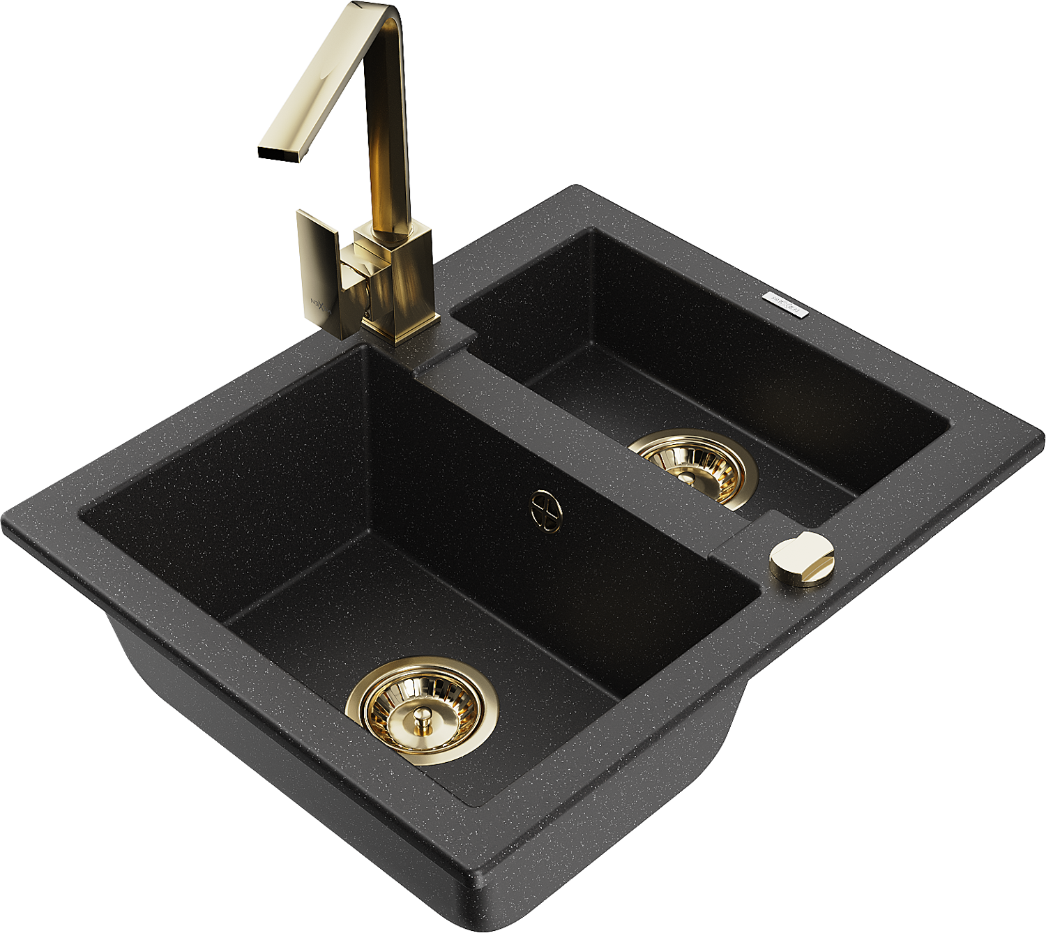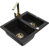 Mexen Carlos chiuvetă de granit cu 1,5 compartimente și baterie de bucătărie Rita, negru/metalic argintiu