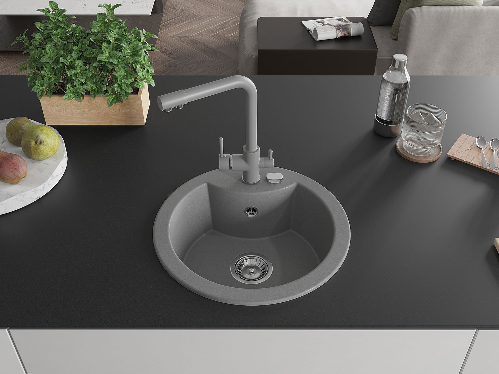 Chiuveta este confecționată din granit de înaltă calitate. Este un complement elegant și, mai ales, practic pentru fiecare bucătărie, indiferent de stilul său. Durabilitatea de înaltă calitate și granit asigură mulți ani de utilizare.