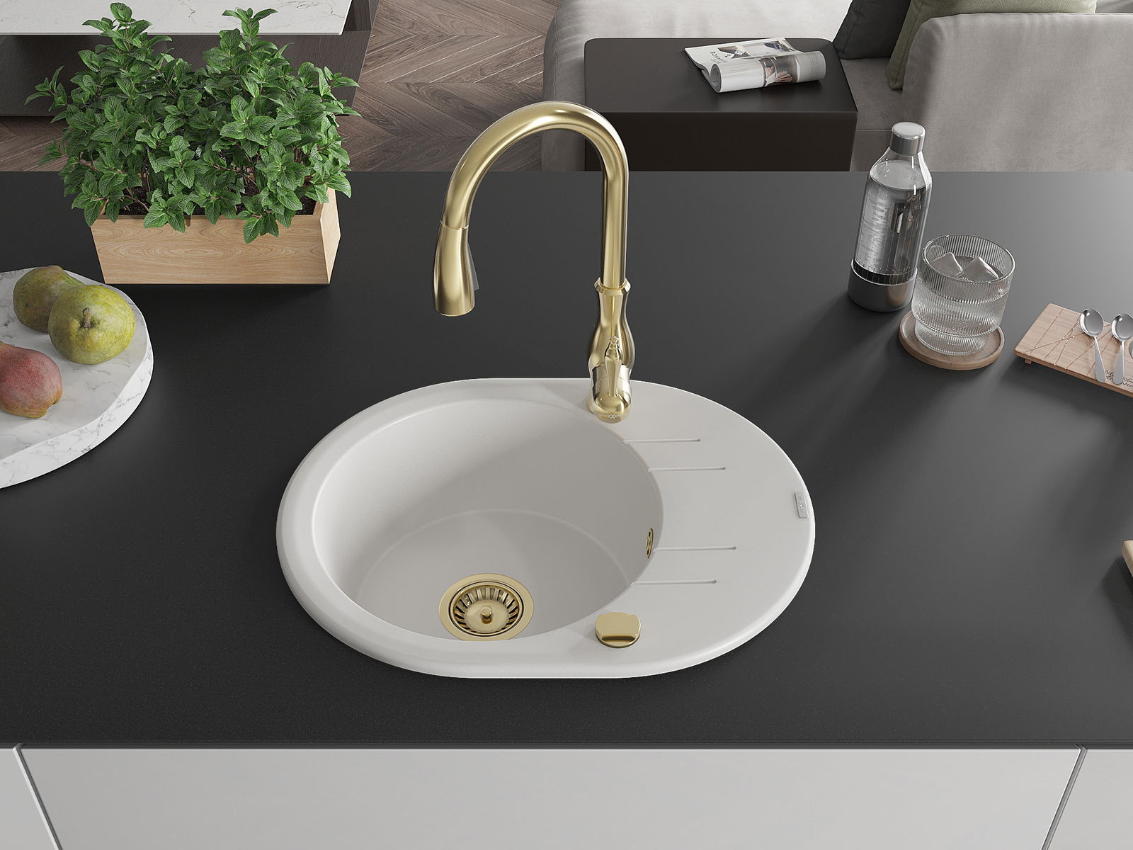 Suprafața chiuvetei este rezistentă la pete și decolorarea, datorită căreia este ușor de curățat și își păstrează culoarea mult timp. Estetică și practic completarea fiecărei bucătării.