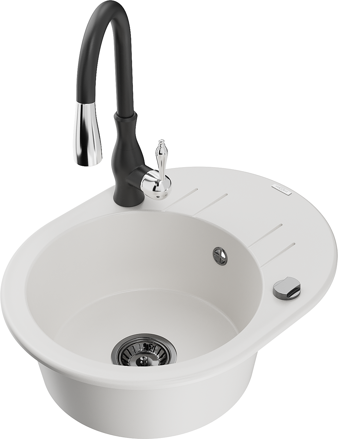 Mexen Kevin chiuvetă de granit cu 1 compartiment, cu scurgător și baterie de bucătărie Savita, alb - 6517-20-672601-70