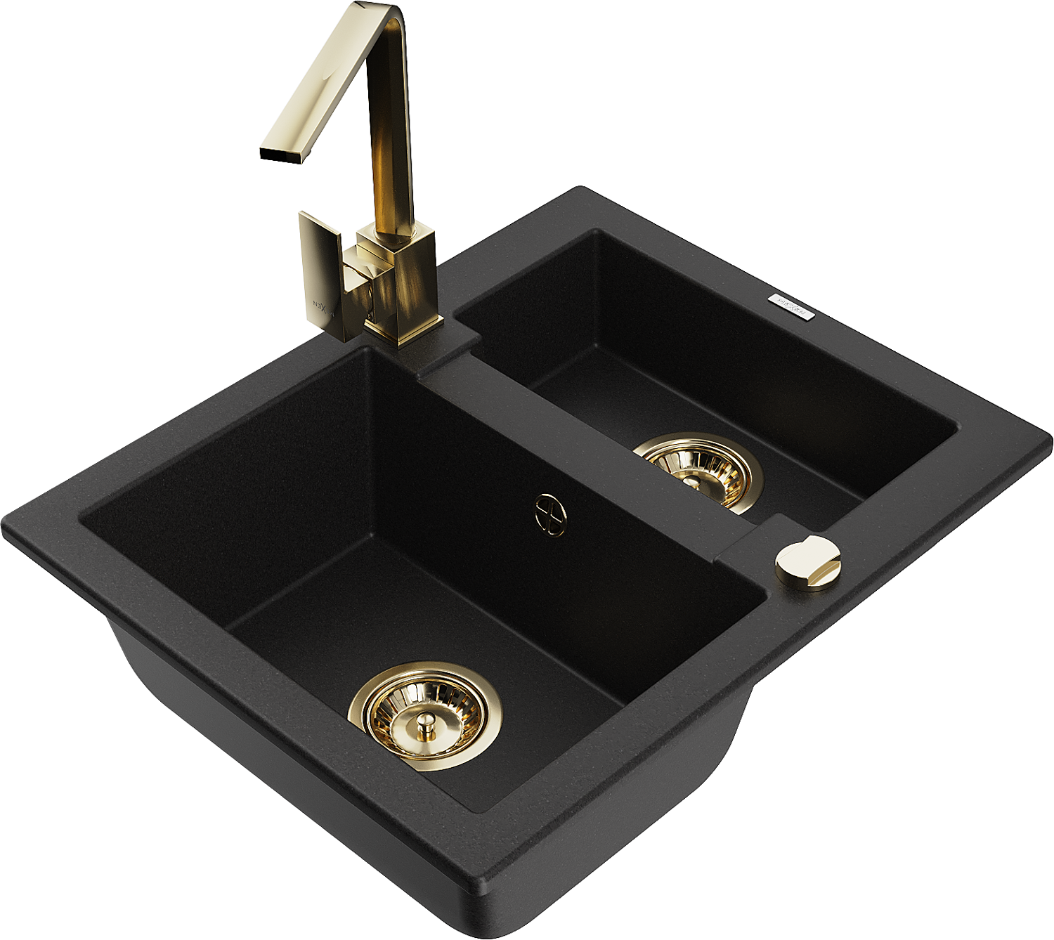 Mexen Carlos chiuvetă granitică cu 1,5 compartimente cu baterie de bucătărie Rita, negru - 6518-77-670300-50