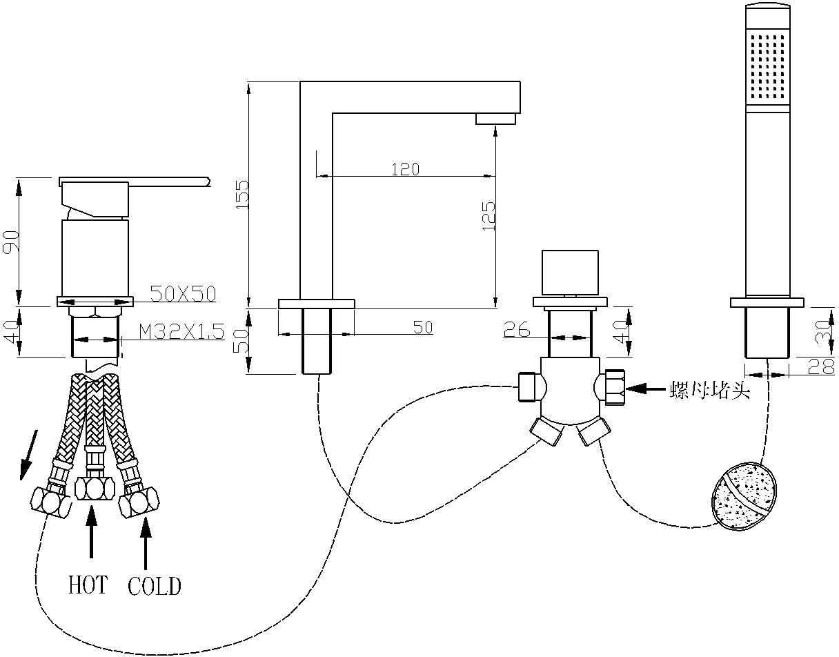 Bateria poate fi montată pe un rang de cadă în găuri special pregătite. Această metodă oferă acces ușor și convenabil și vă permite să reglați rapid fluxul și temperatura apei. Soluție estetică, subliniind stilul băii.