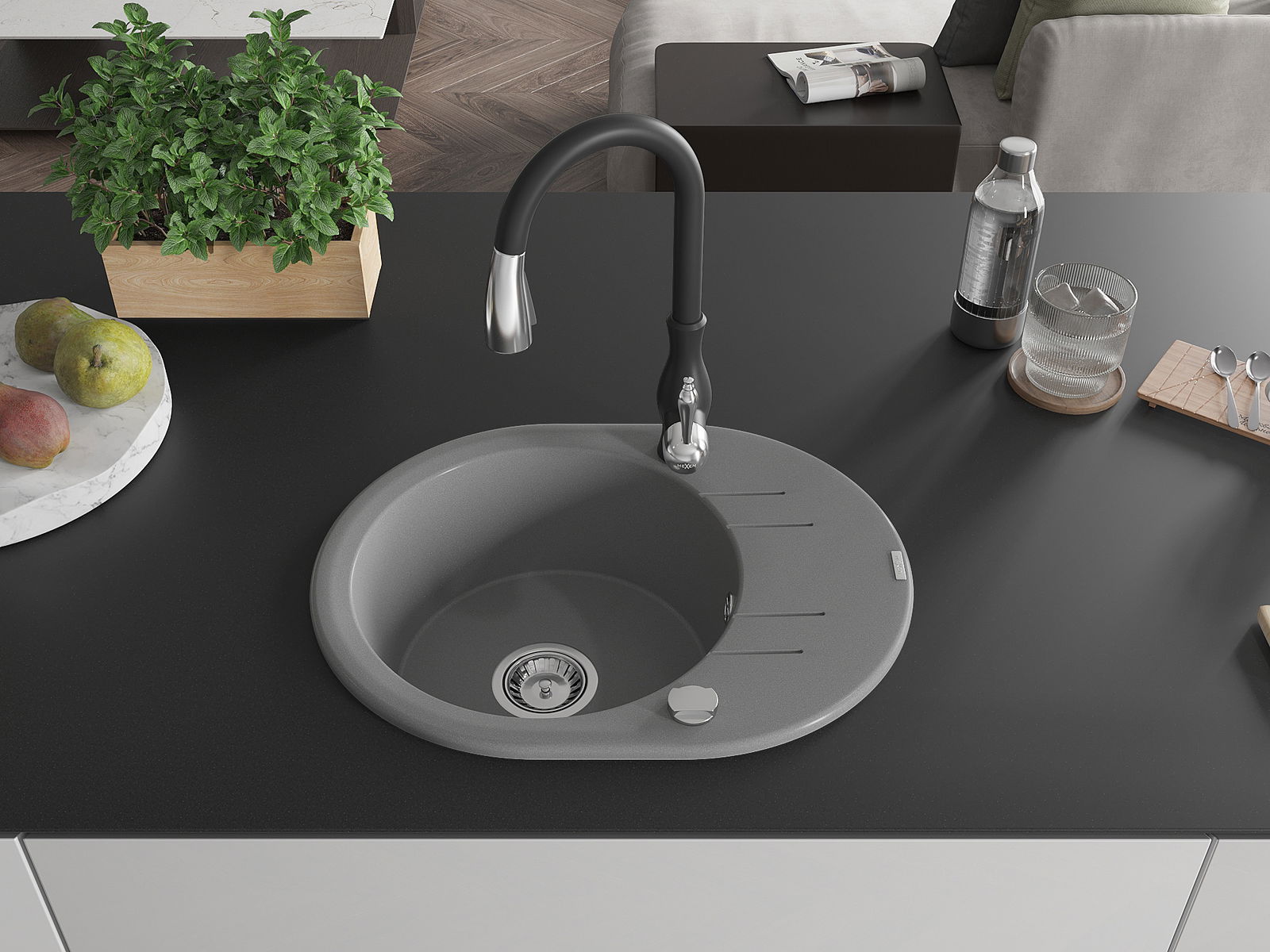 Chiuveta a fost realizată din granit de înaltă calitate. Reprezintă un complement elegant și, mai presus de toate, practic pentru orice bucătărie, indiferent de stilul acesteia. Calitatea înaltă și durabilitatea granitului asigură o utilizare de lungă durată.