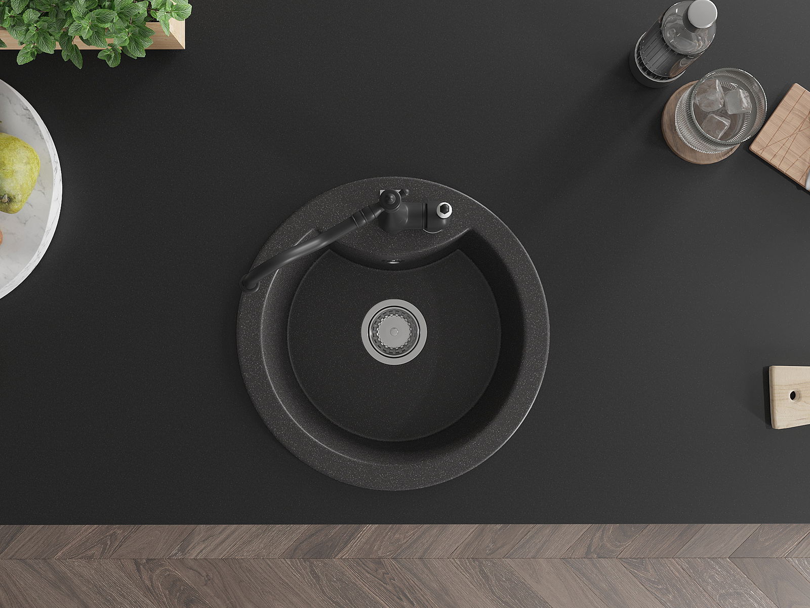 Chiuveta are o gaură prezentată cu un diametru de 35 mm pentru auto -burst. Poate fi folosit, printre altele Pentru montarea unui distribuitor de lichid care va elimina prezența sticlelor de plastic în bucătărie și îi va oferi un finisaj elegant.