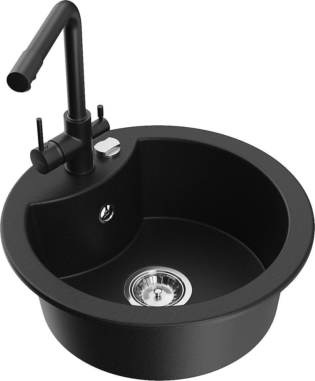 Mexen Diego chiuvetă de granit cu 1 compartiment și robinet de bucătărie Duero, negru - 6512-77-671600-70