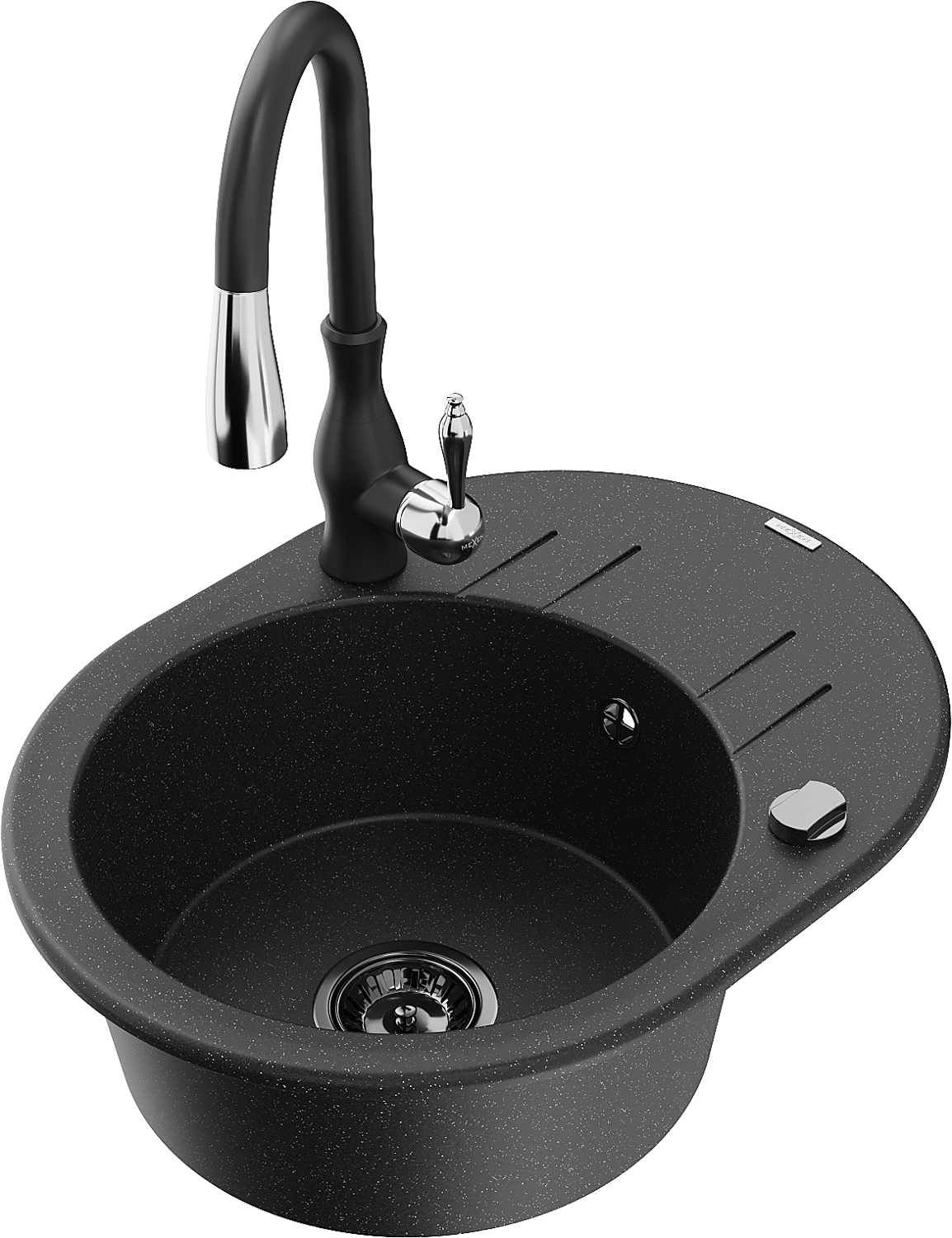 Mexen Kevin chiuvetă de bucătărie din granit cu o cuvă și scurgător, cu baterie de bucătărie Savita, negru/argintiu - 6517-73-6?