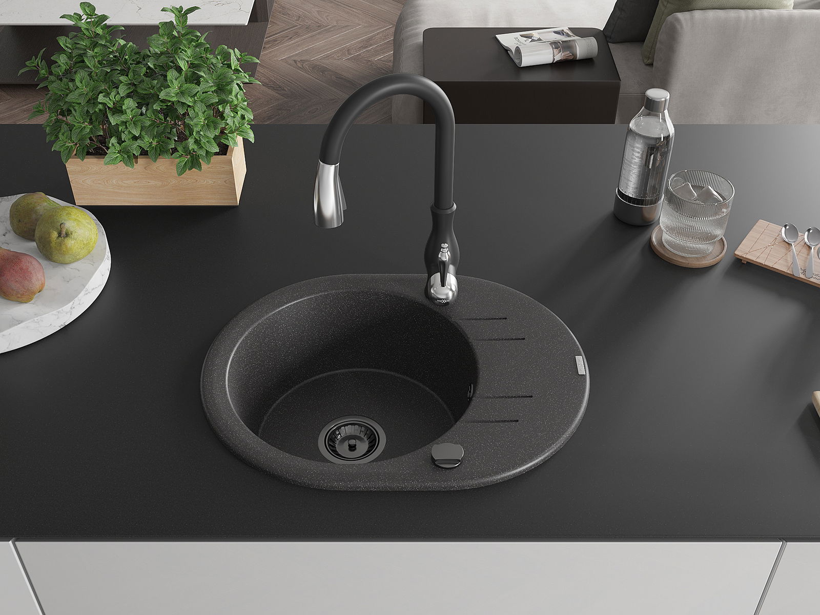 Chiuveta a fost realizată din granit de înaltă calitate. Reprezintă un complement elegant și, mai presus de toate, practic pentru orice bucătărie, indiferent de stilul acesteia. Calitatea înaltă și durabilitatea granitului asigură o utilizare de lungă durată.