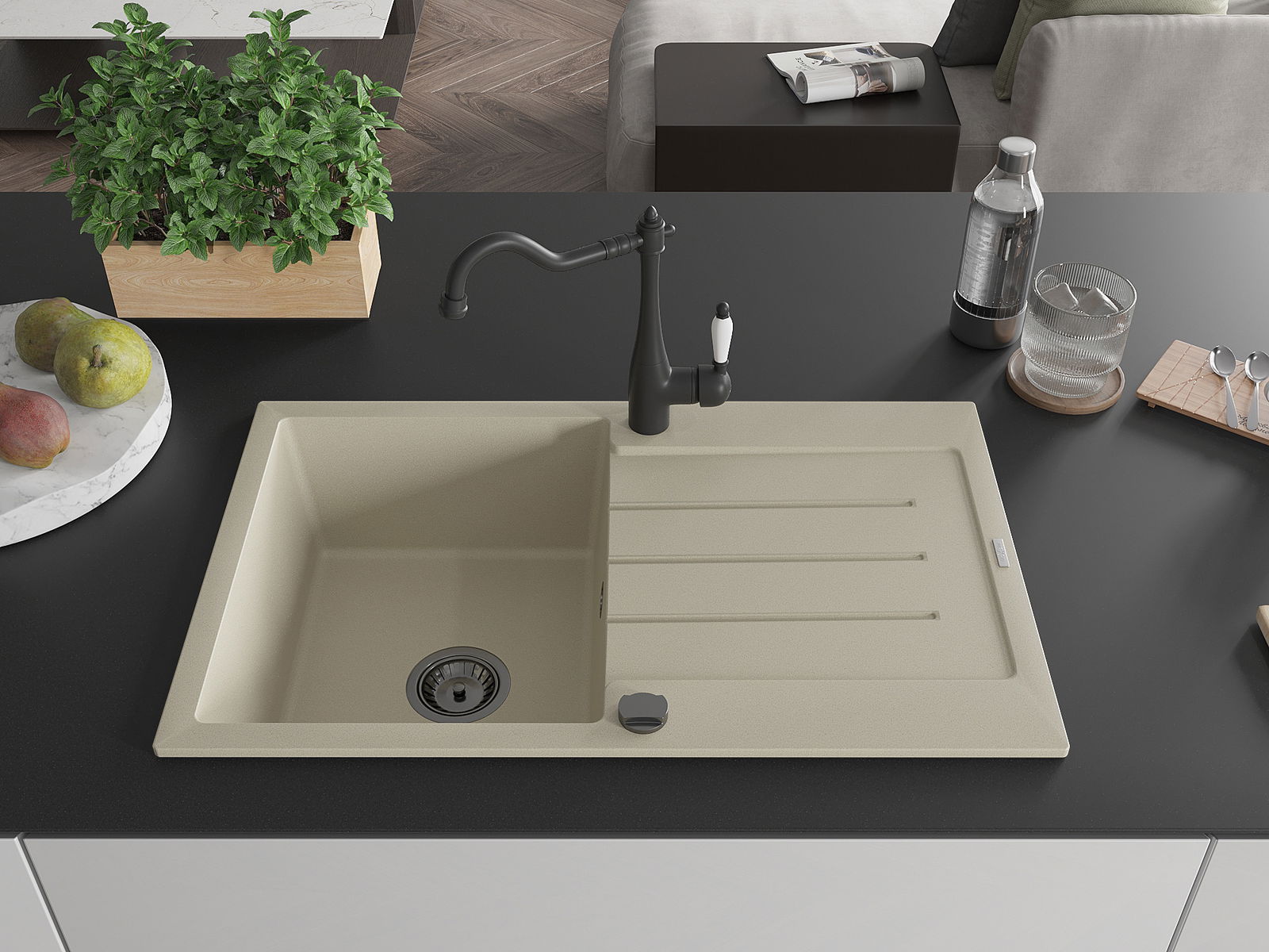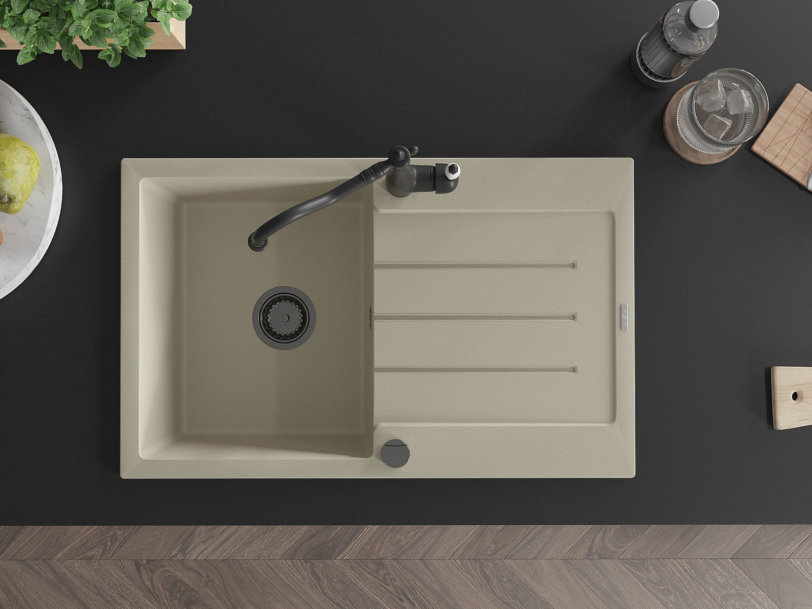 Suprafața chiuvetei este rezistentă la pete și decolorarea, datorită căreia este ușor de curățat și își păstrează culoarea mult timp. Estetică și practic completarea fiecărei bucătării.
