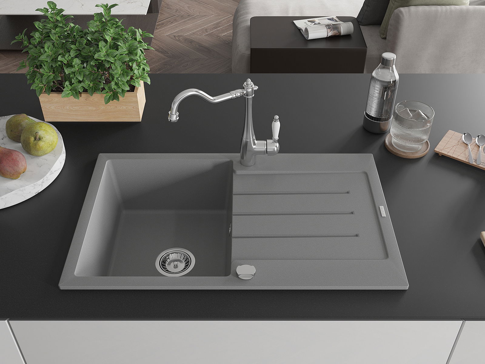 Chiuveta este confecționată din granit de înaltă calitate. Este un complement elegant și, mai ales, practic pentru fiecare bucătărie, indiferent de stilul său. Durabilitatea de înaltă calitate și granit asigură mulți ani de utilizare.