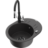 Mexen Kevin chiuvetă de bucătărie din granit cu 1 compartiment cu scurgător și robinet de bucătărie Savita, negru - 6517-77-672?