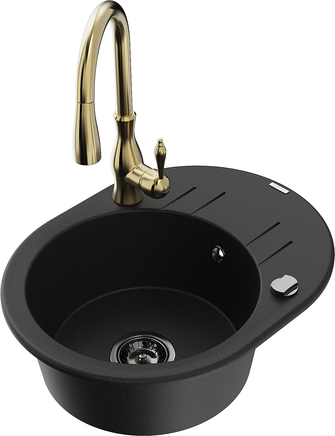 Mexen Kevin chiuvetă de granit cu o cuvă, cu scurgător și baterie de bucătărie Savita, negru - 6517-77-672601-50-B