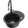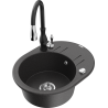 Mexen Kevin chiuvetă de bucătărie din granit cu o singură cameră cu scurgător și robinet Savita, negru