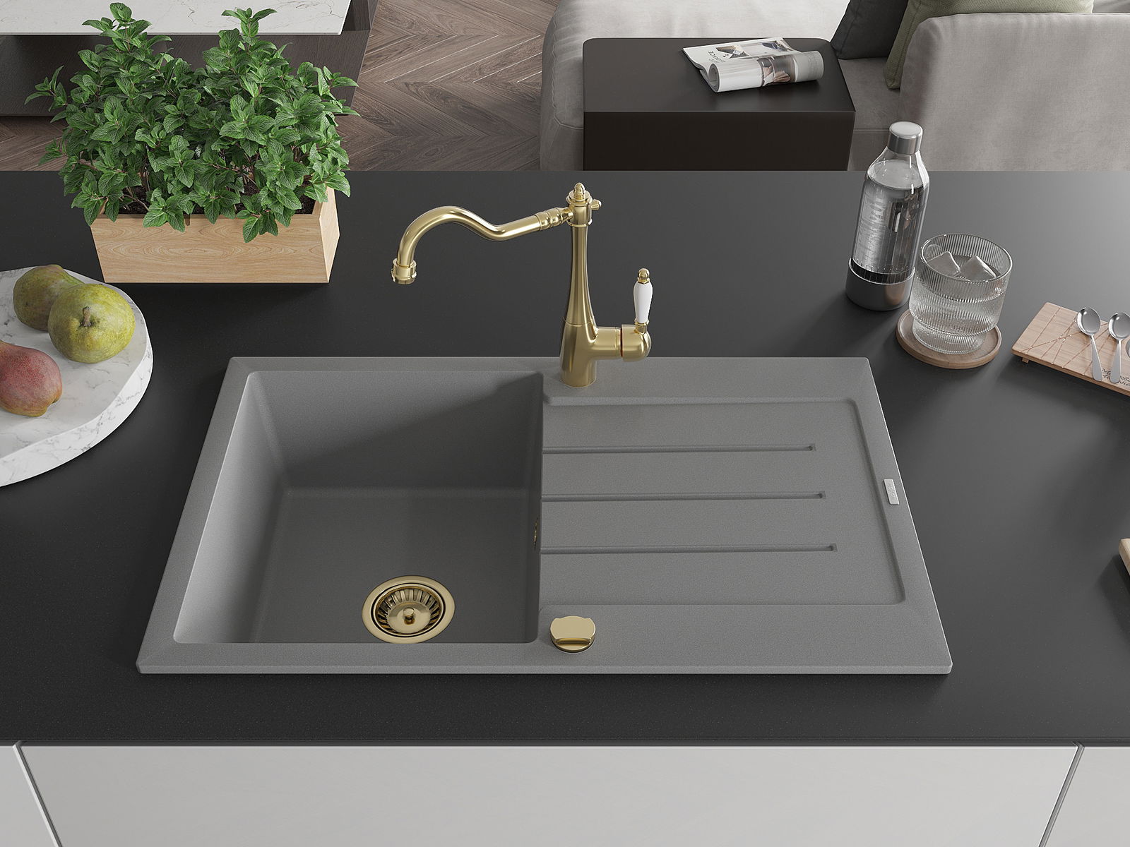 Suprafața chiuvetei este rezistentă la pete și decolorarea, datorită căreia este ușor de curățat și își păstrează culoarea mult timp. Estetică și practic completarea fiecărei bucătării.