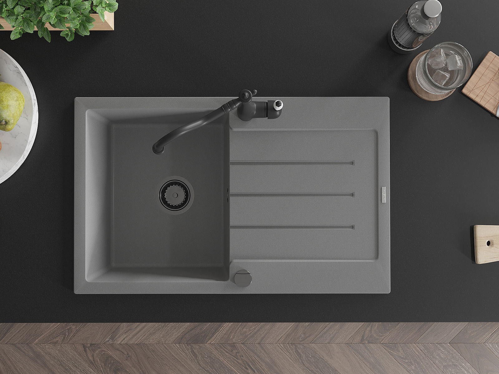 Suprafața chiuvetei este rezistentă la pete și decolorarea, datorită căreia este ușor de curățat și își păstrează culoarea mult timp. Estetică și practic completarea fiecărei bucătării.