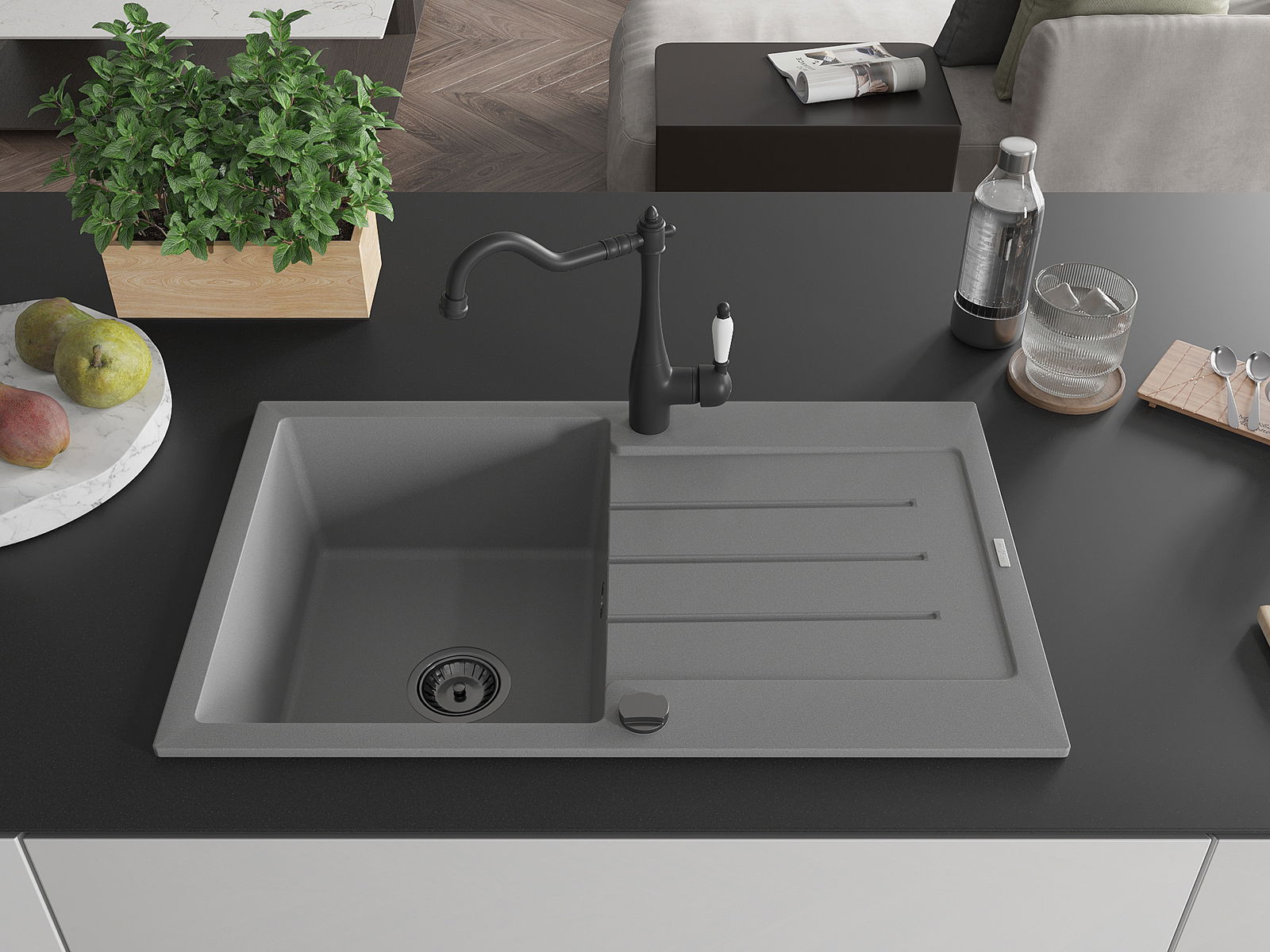 Chiuveta este confecționată din granit de înaltă calitate. Este un complement elegant și, mai ales, practic pentru fiecare bucătărie, indiferent de stilul său. Durabilitatea de înaltă calitate și granit asigură mulți ani de utilizare.