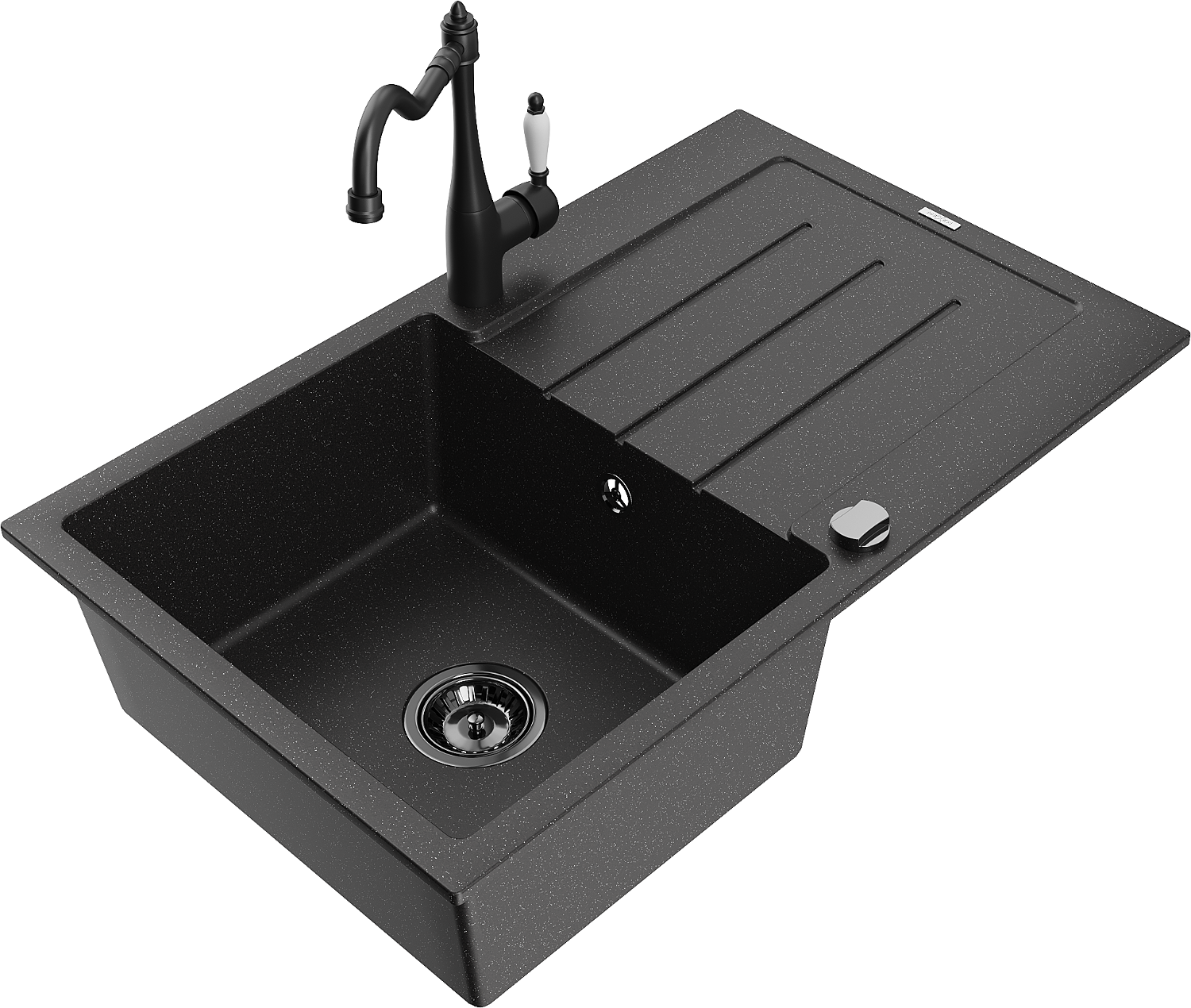 Mexen Bruno chiuvetă de granit cu 1 compartiment cu scurgător și baterie de bucătărie Carla, negru/argintiu metalizat - 6513-73?