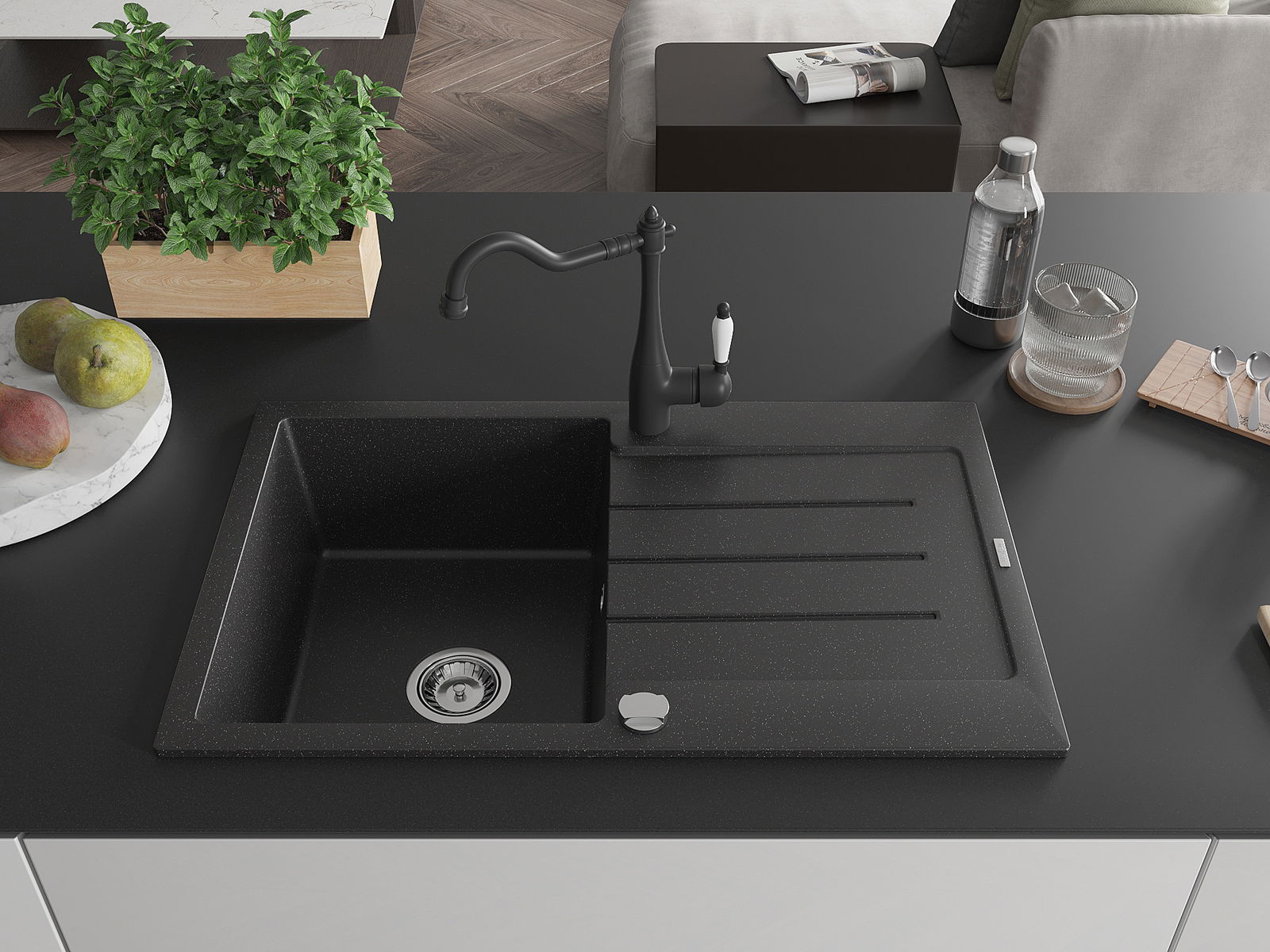 Chiuveta a fost realizată din granit de înaltă calitate. Reprezintă un complement elegant și, mai presus de toate, practic pentru orice bucătărie, indiferent de stilul acesteia. Calitatea înaltă și durabilitatea granitului asigură o utilizare de lungă durată.