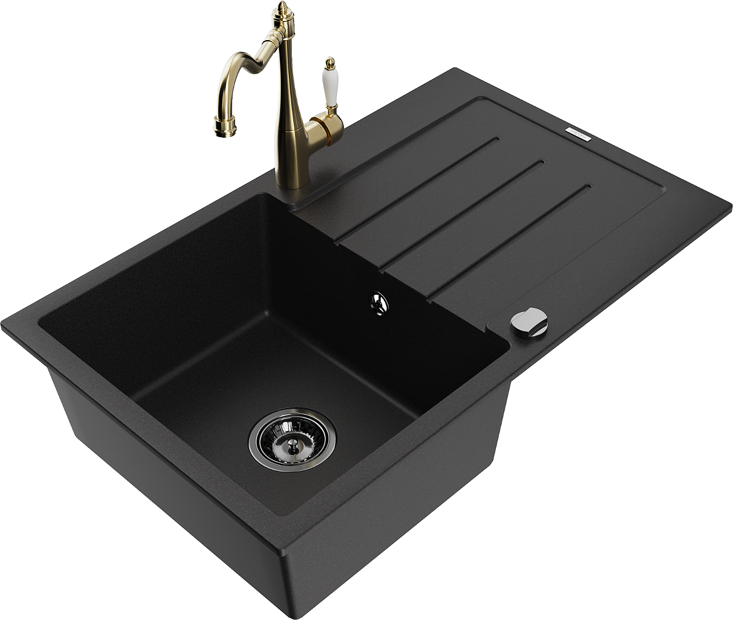 Mexen Bruno chiuvetă de bucătărie din granit cu 1 compartiment, cu scurgător și baterie Carla, negru - 6513-77-670700-50-B