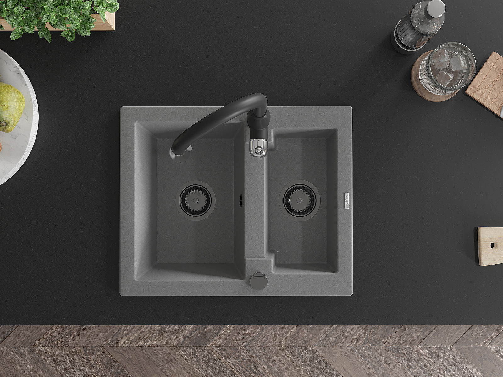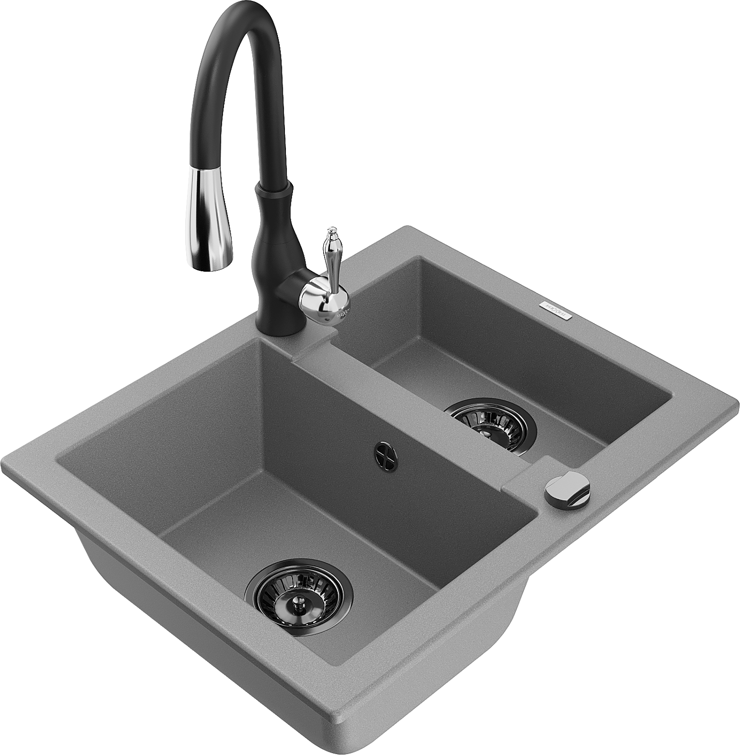 Mexen Carlos chiuvetă de granit 1,5-camere cu baterie de bucătărie Savita, gri - 6518-71-672601-70-B