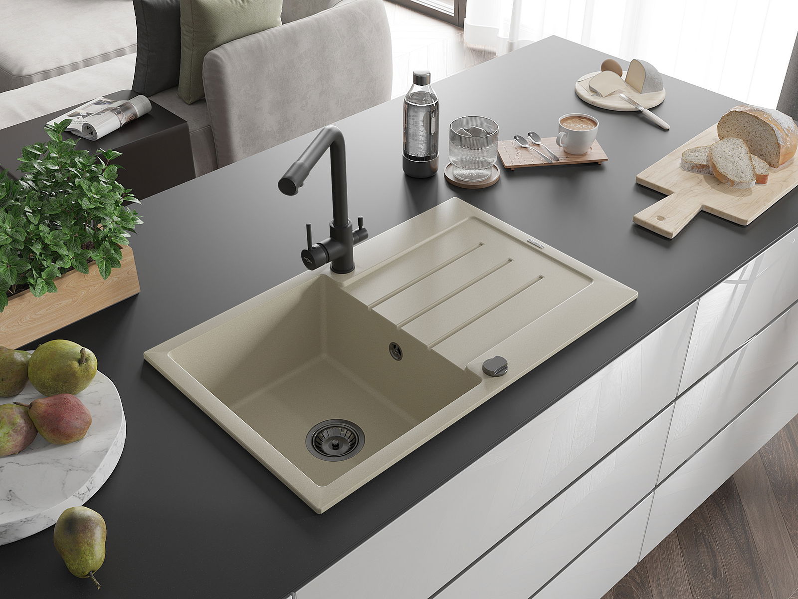 Chiuveta este confecționată din granit de înaltă calitate. Este un complement elegant și, mai ales, practic pentru fiecare bucătărie, indiferent de stilul său. Durabilitatea de înaltă calitate și granit asigură mulți ani de utilizare.