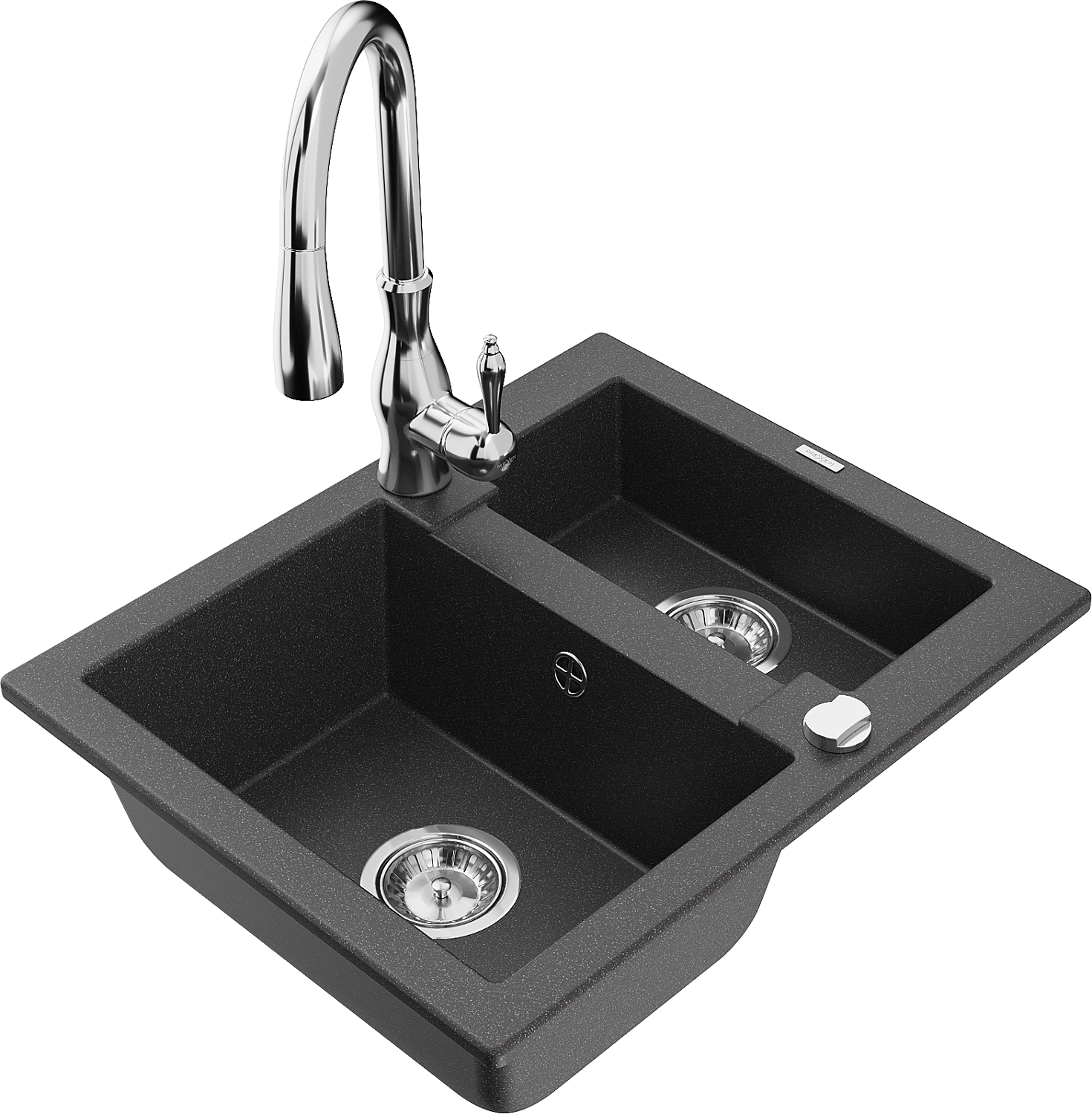 Mexen Carlos chiuvetă din granit cu 1,5 compartimente cu baterie de bucătărie Savita, negru cu pete - 6518-76-672601-00