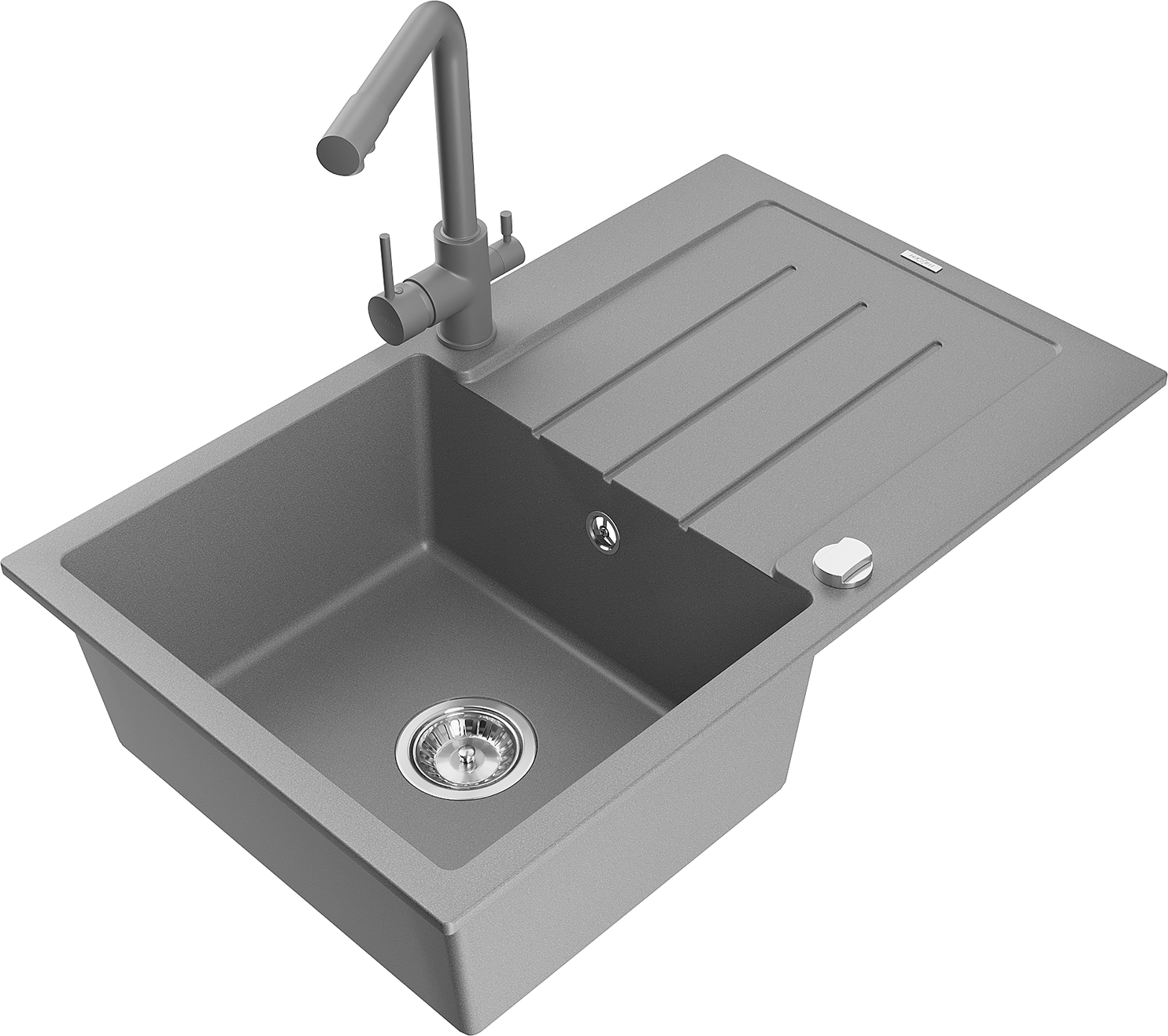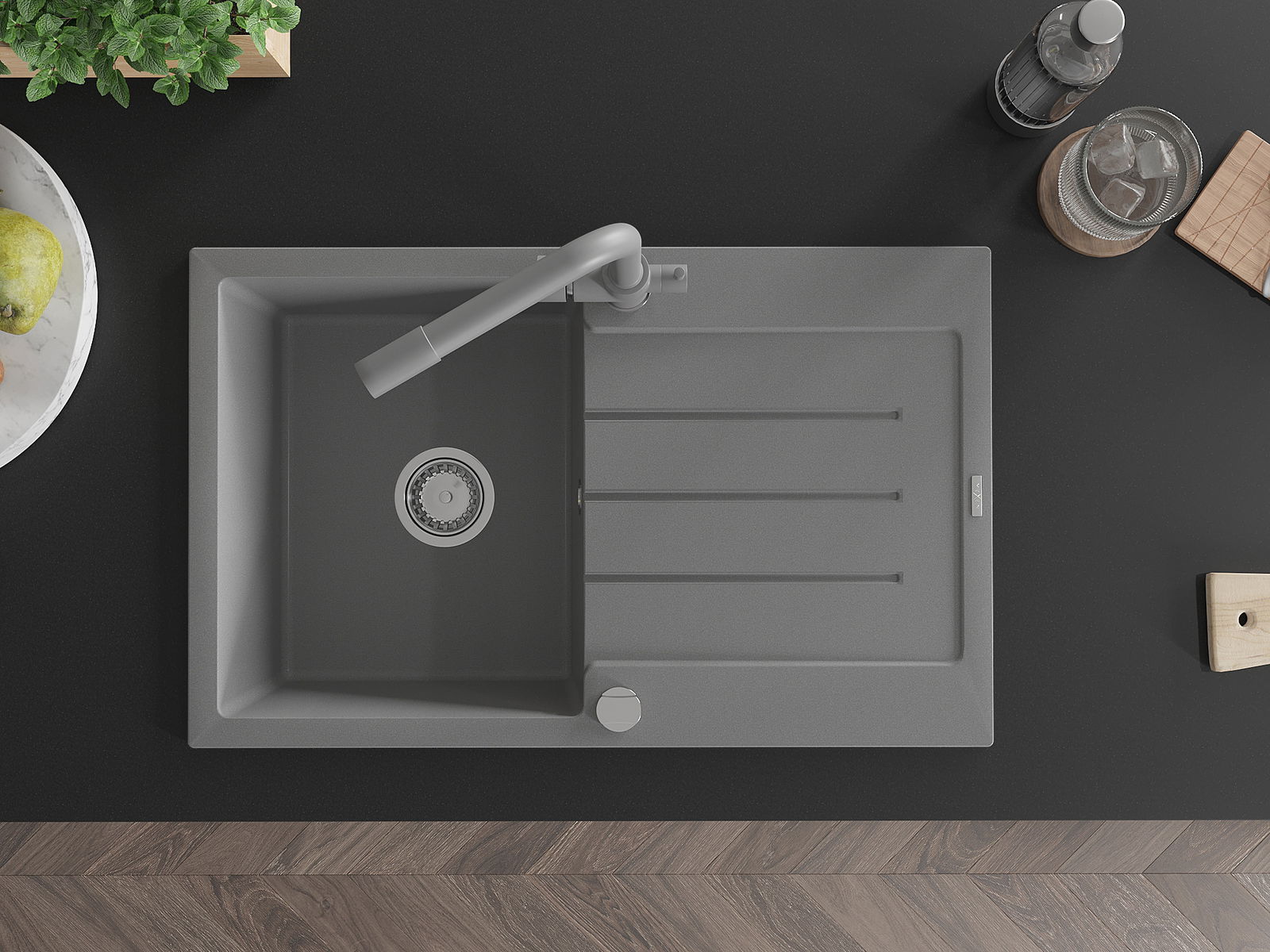 Mexen Bruno chiuvetă de bucătărie 1-cameră din granit cu scurgător și robinet Duero, gri - 6513-71-671600-71