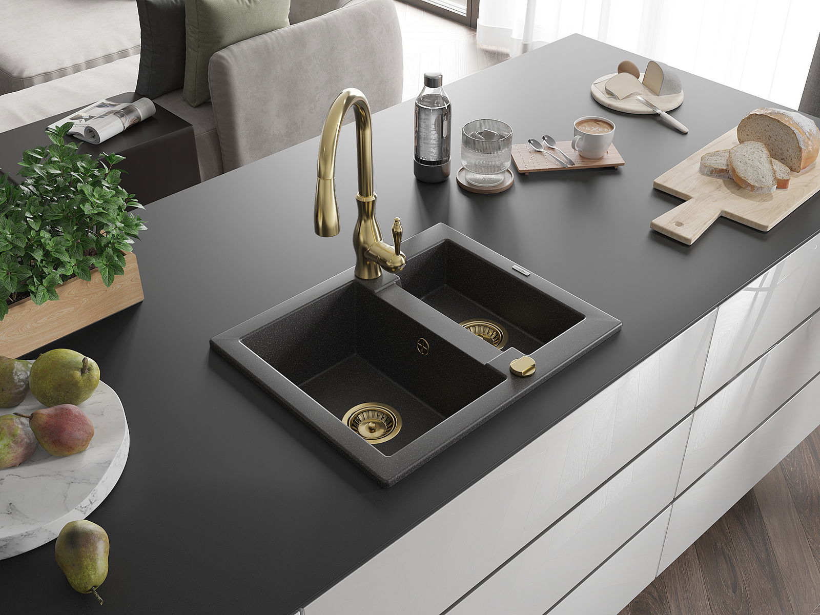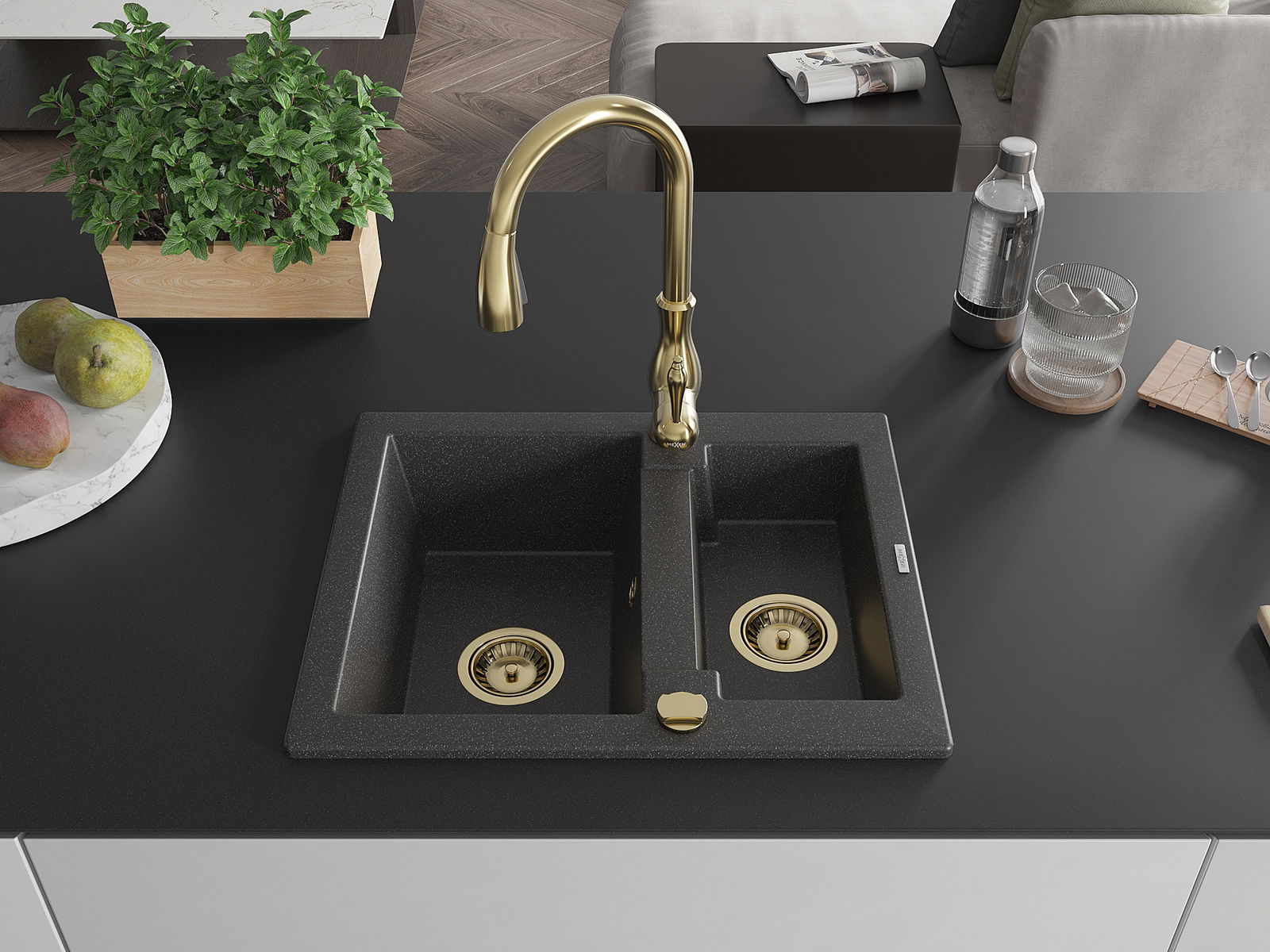 Suprafața chiuvetei este rezistentă la pete și decolorarea, datorită căreia este ușor de curățat și își păstrează culoarea mult timp. Estetică și practic completarea fiecărei bucătării.